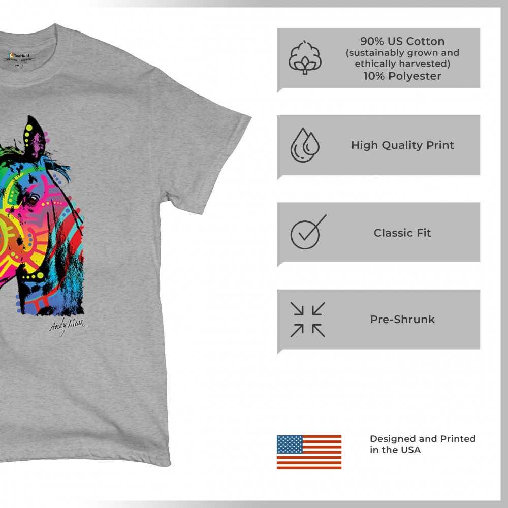 Celebrate your love for horses and art with this eye-catching multicolored horse head design. Packed with bold neon shades, abstract patterns, and expressive linework, it radiates motion and energy. A perfect fusion of animal beauty and pop art creativity, ideal for equestrians, art lovers, and color-forward trendsetters alike.
