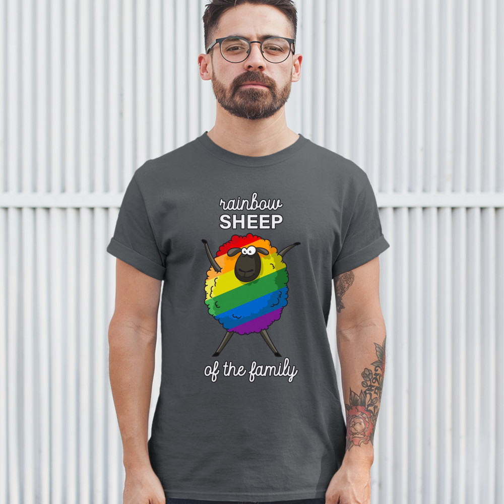 RAINBOW SHEEP OF THE FAMILY t-shirt gay pride lgbt support funny men's tee charcoal