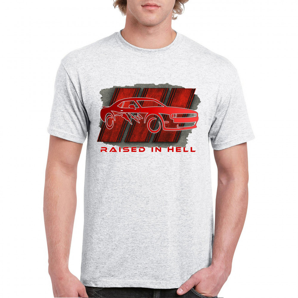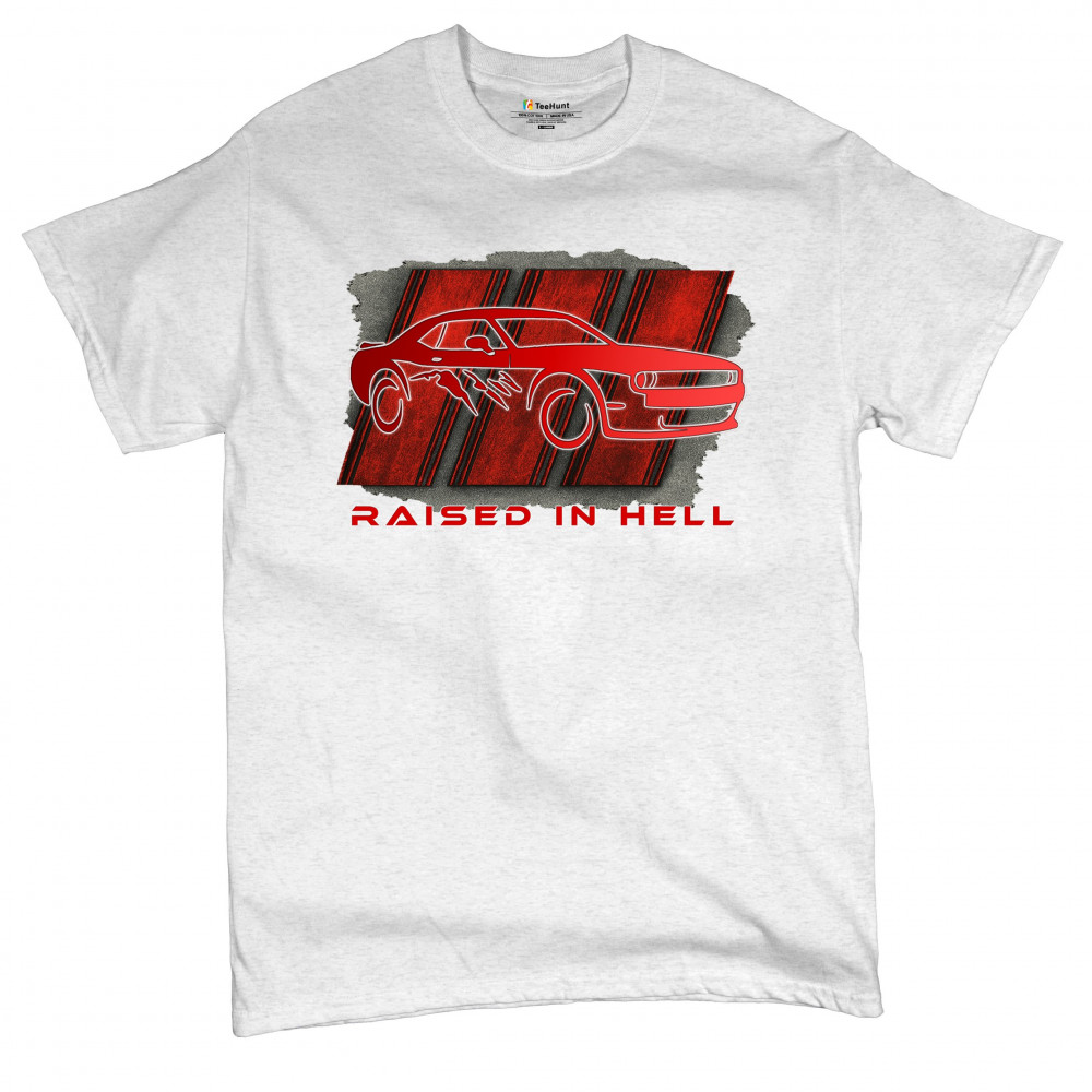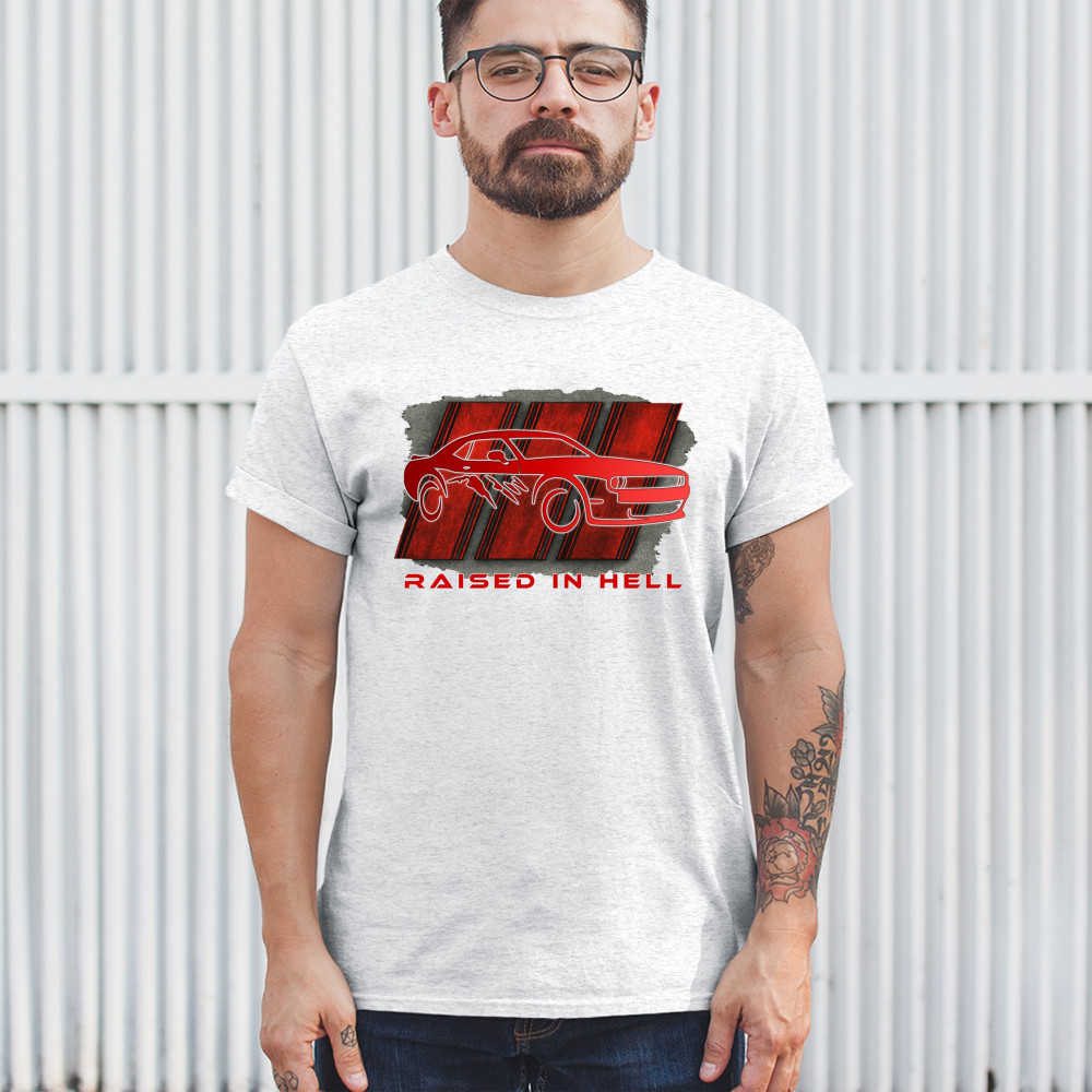 Bring heat to the streets with this Raised in Hell design. Featuring a blazing red muscle car and aggressive claw marks, it's perfect for Scat Pack lovers, burnout warriors, and throttle addicts. Whether you're tearing down the strip or parked at the meet, this design delivers pure muscle attitude and street-born fire.