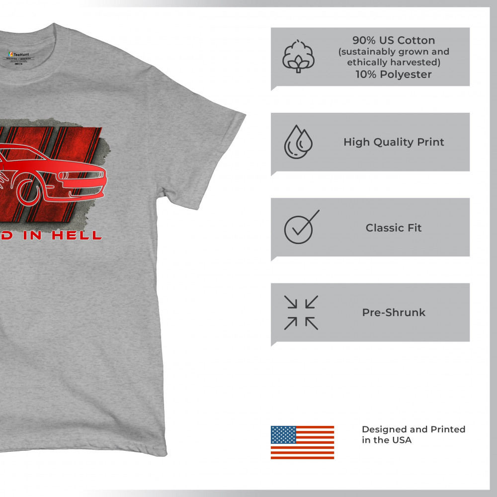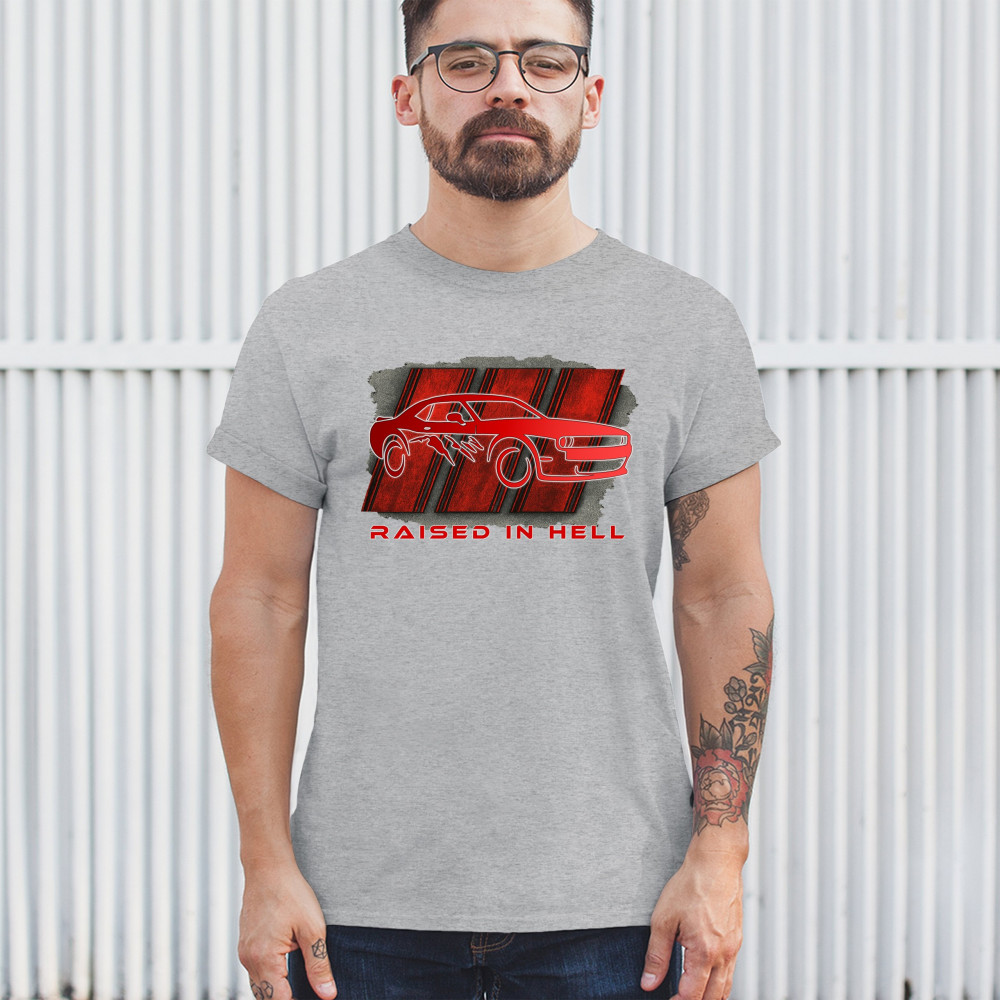 Bring heat to the streets with this Raised in Hell design. Featuring a blazing red muscle car and aggressive claw marks, it's perfect for Scat Pack lovers, burnout warriors, and throttle addicts. Whether you're tearing down the strip or parked at the meet, this design delivers pure muscle attitude and street-born fire.