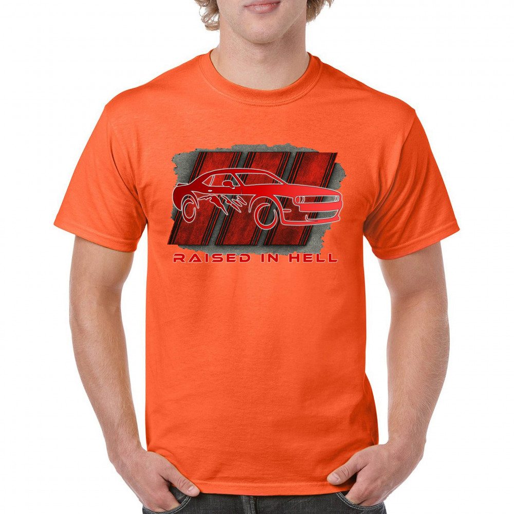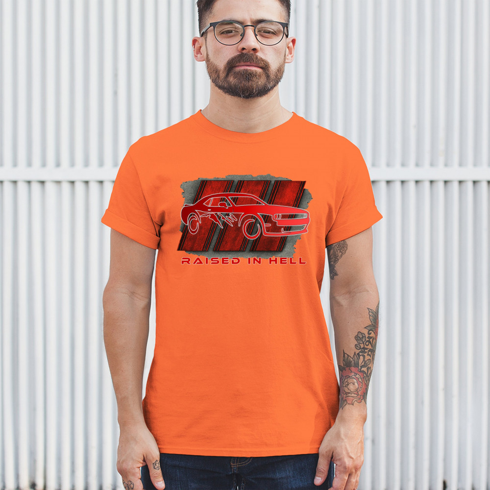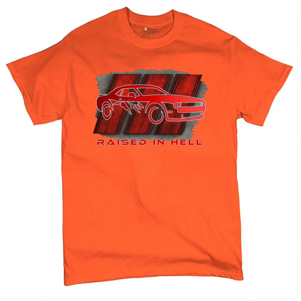 Bring heat to the streets with this Raised in Hell design. Featuring a blazing red muscle car and aggressive claw marks, it's perfect for Scat Pack lovers, burnout warriors, and throttle addicts. Whether you're tearing down the strip or parked at the meet, this design delivers pure muscle attitude and street-born fire.