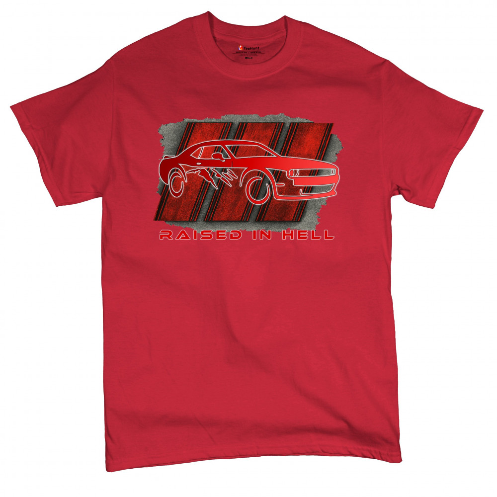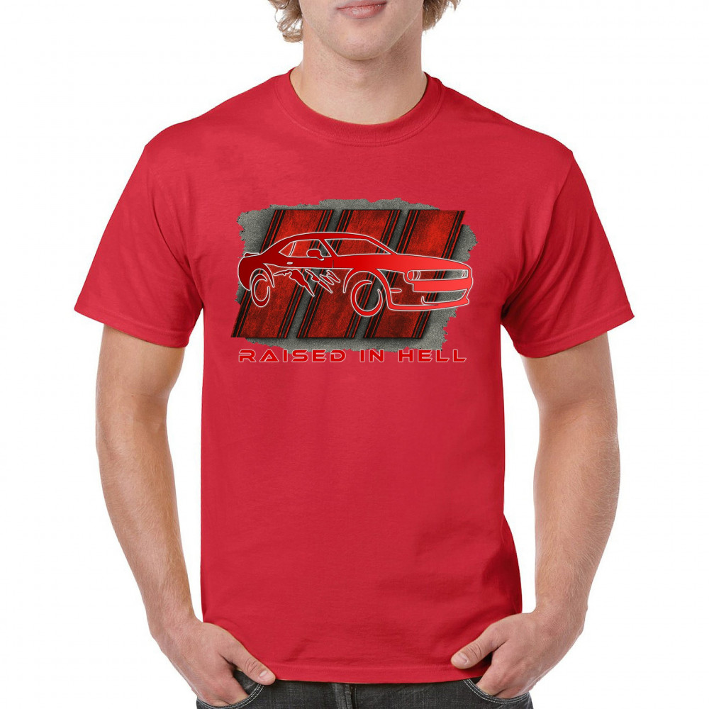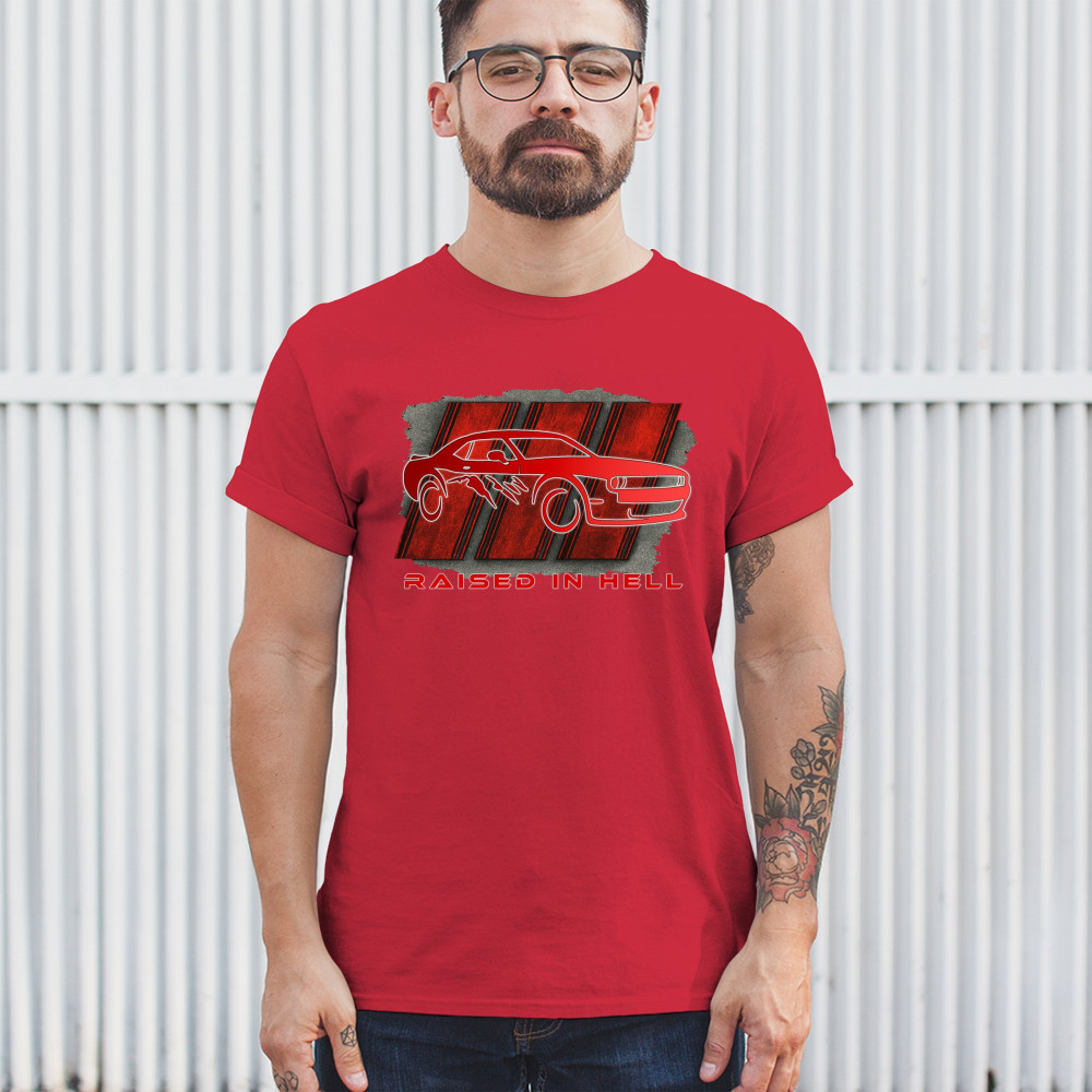 Bring heat to the streets with this Raised in Hell design. Featuring a blazing red muscle car and aggressive claw marks, it's perfect for Scat Pack lovers, burnout warriors, and throttle addicts. Whether you're tearing down the strip or parked at the meet, this design delivers pure muscle attitude and street-born fire.
