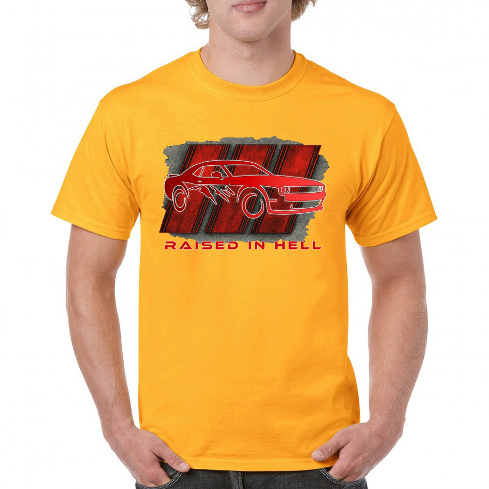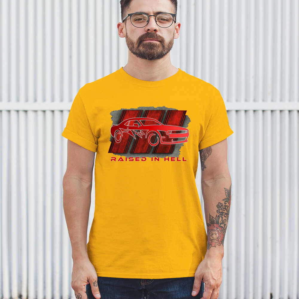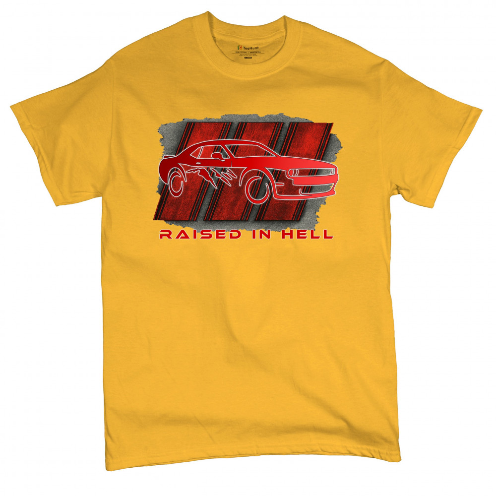 Bring heat to the streets with this Raised in Hell design. Featuring a blazing red muscle car and aggressive claw marks, it's perfect for Scat Pack lovers, burnout warriors, and throttle addicts. Whether you're tearing down the strip or parked at the meet, this design delivers pure muscle attitude and street-born fire.