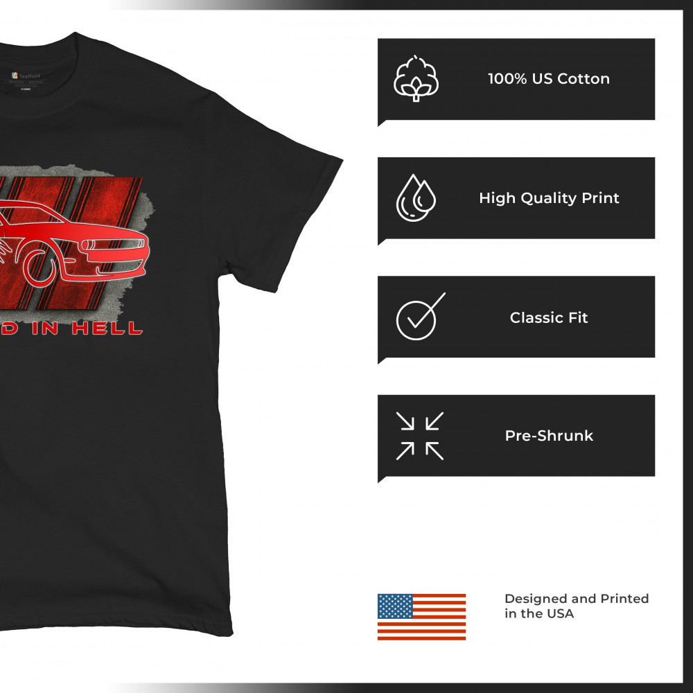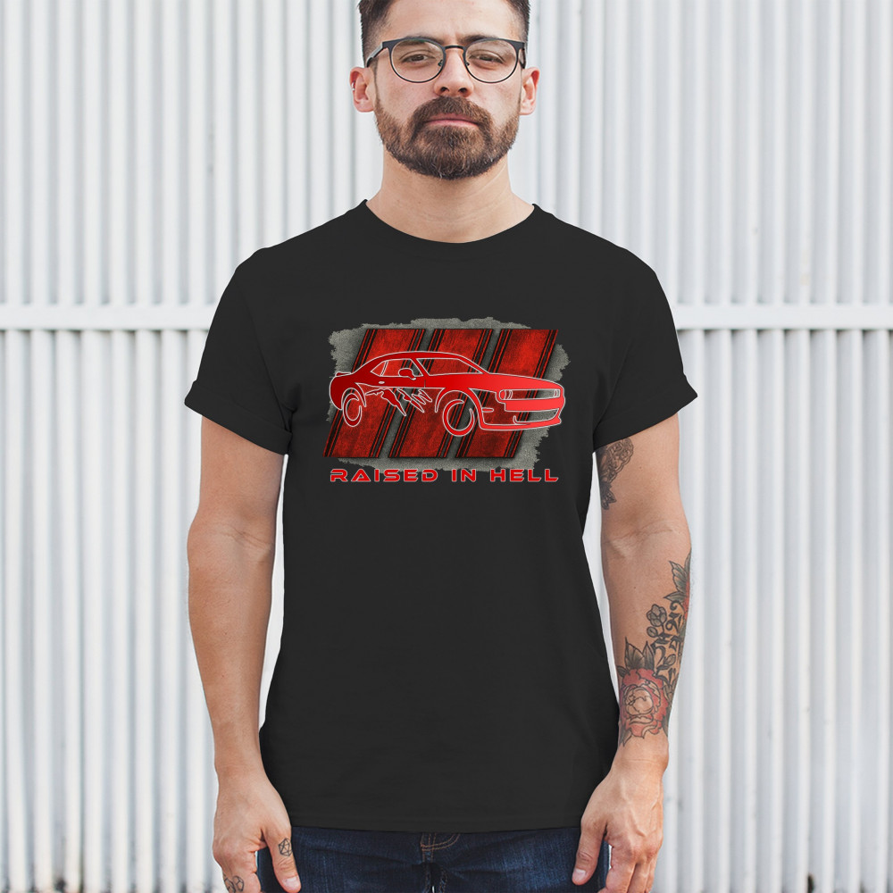 RAISED IN HELL MUSCLE CAR t-shirt american performance power rt v8 men's tee black