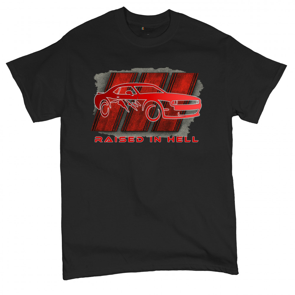 Bring heat to the streets with this Raised in Hell design. Featuring a blazing red muscle car and aggressive claw marks, it's perfect for Scat Pack lovers, burnout warriors, and throttle addicts. Whether you're tearing down the strip or parked at the meet, this design delivers pure muscle attitude and street-born fire.