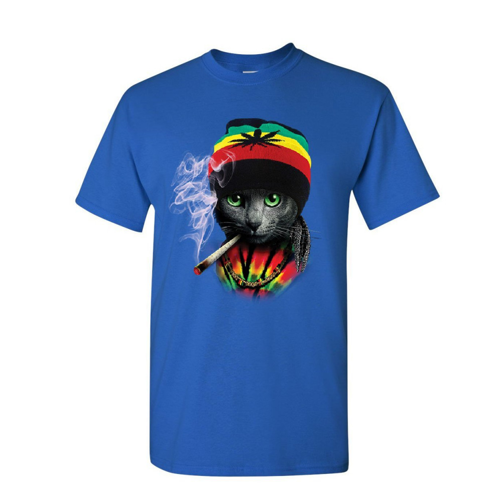 RASTA CAT t-shirt smoking joint 420 jamaica marijuana pot weed mens tee shirt royal blue