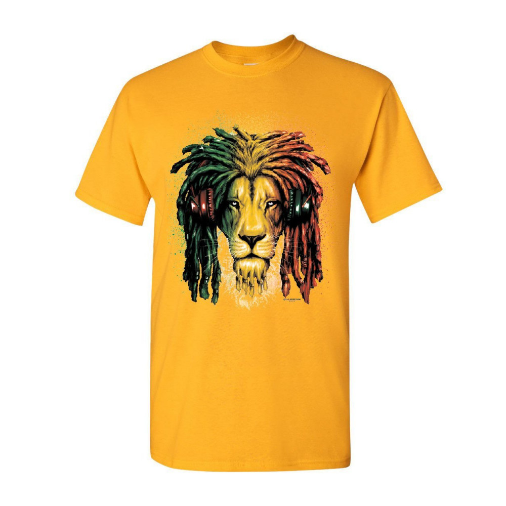 RASTA LION WITH HEADPHONES 420 rasta lion with headphones t-shirt reggae smoking jamaica 420 tee yellow