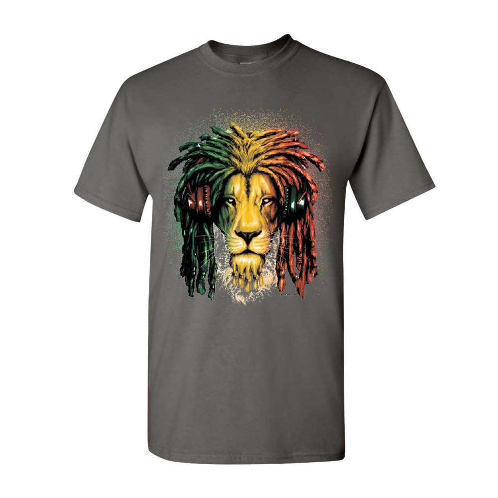 RASTA LION WITH HEADPHONES 420 rasta lion with headphones t-shirt reggae smoking jamaica 420 tee charcoal