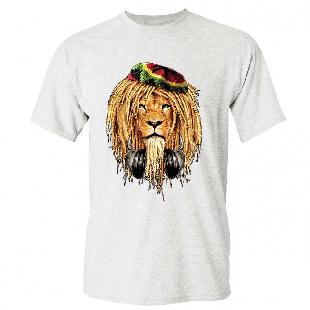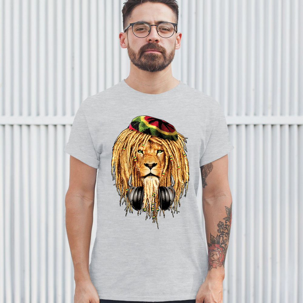 RASTA LION WITH HEADPHONES t-shirt jah jamaica reggae 420 culture men's tee ash gray