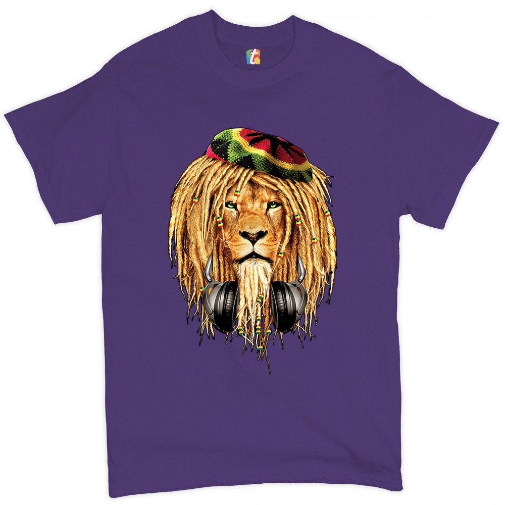 RASTA LION WITH HEADPHONES t-shirt jah jamaica reggae 420 culture men's tee purple