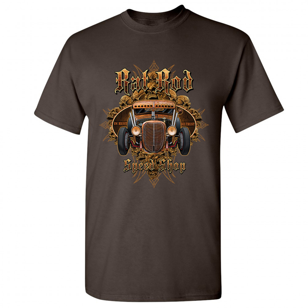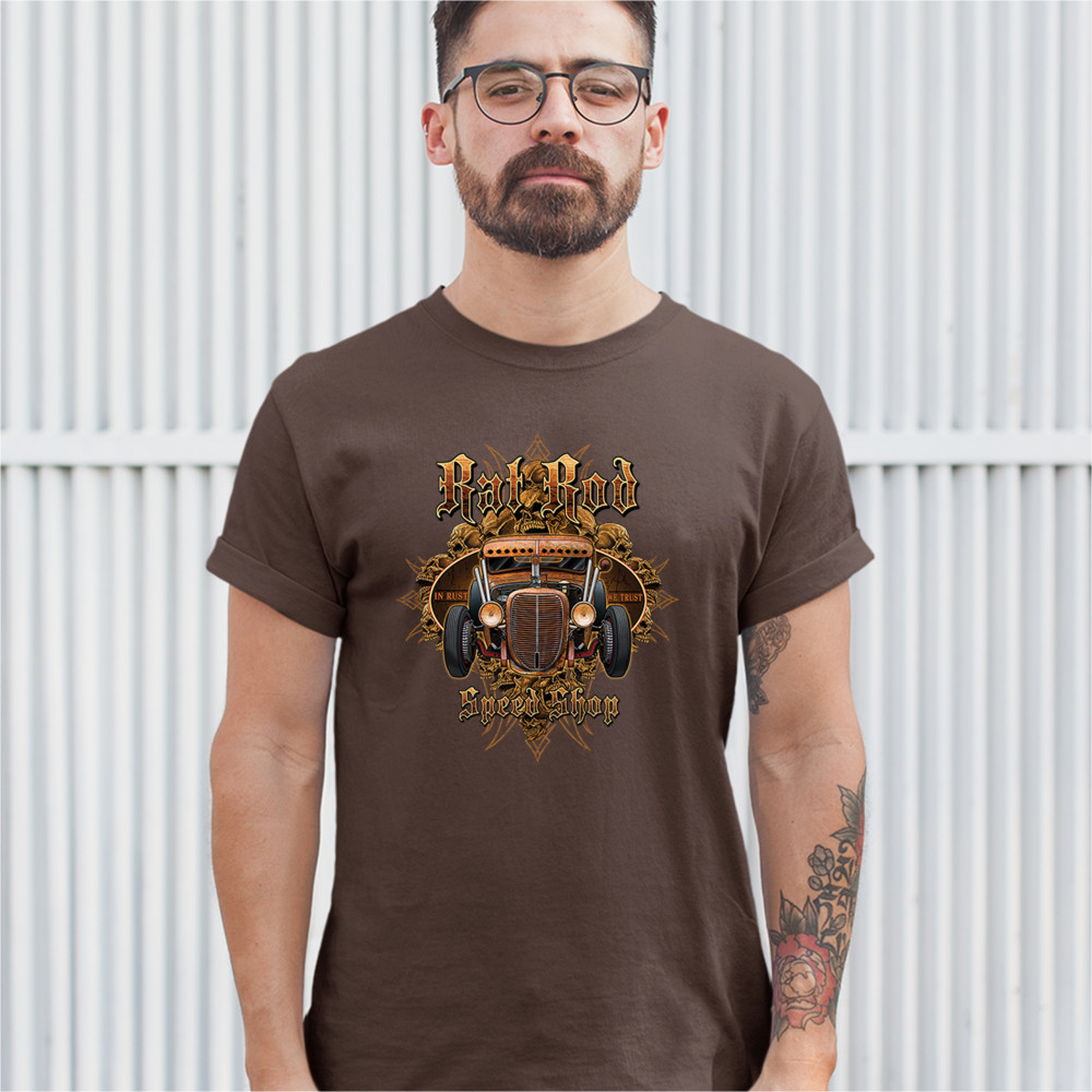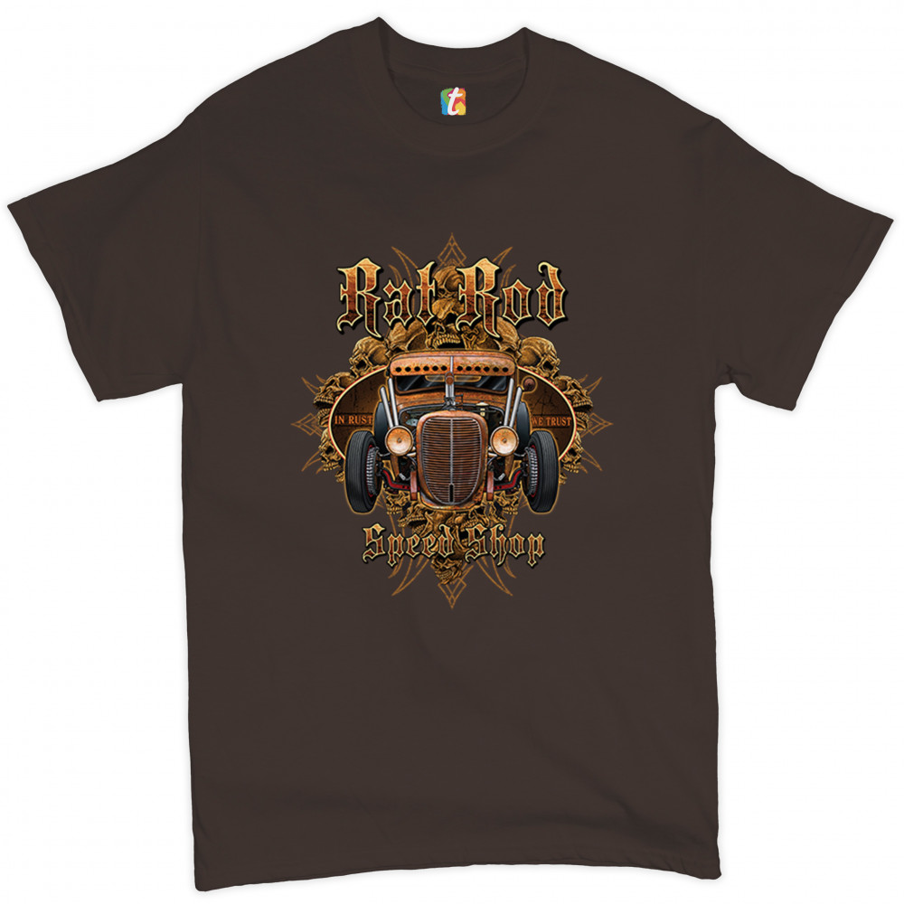 RAT ROD IN RUST WE TRUST t-shirt hot rod route 66 old school men's tee brown