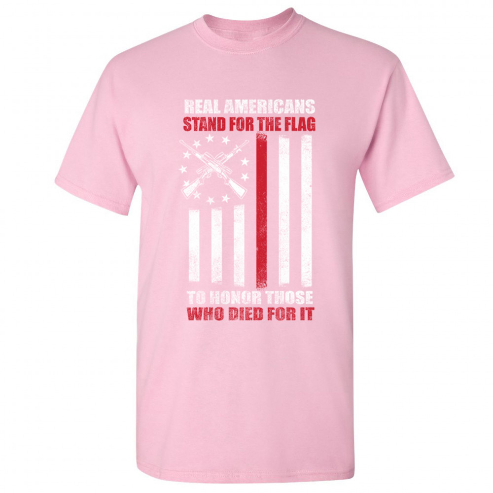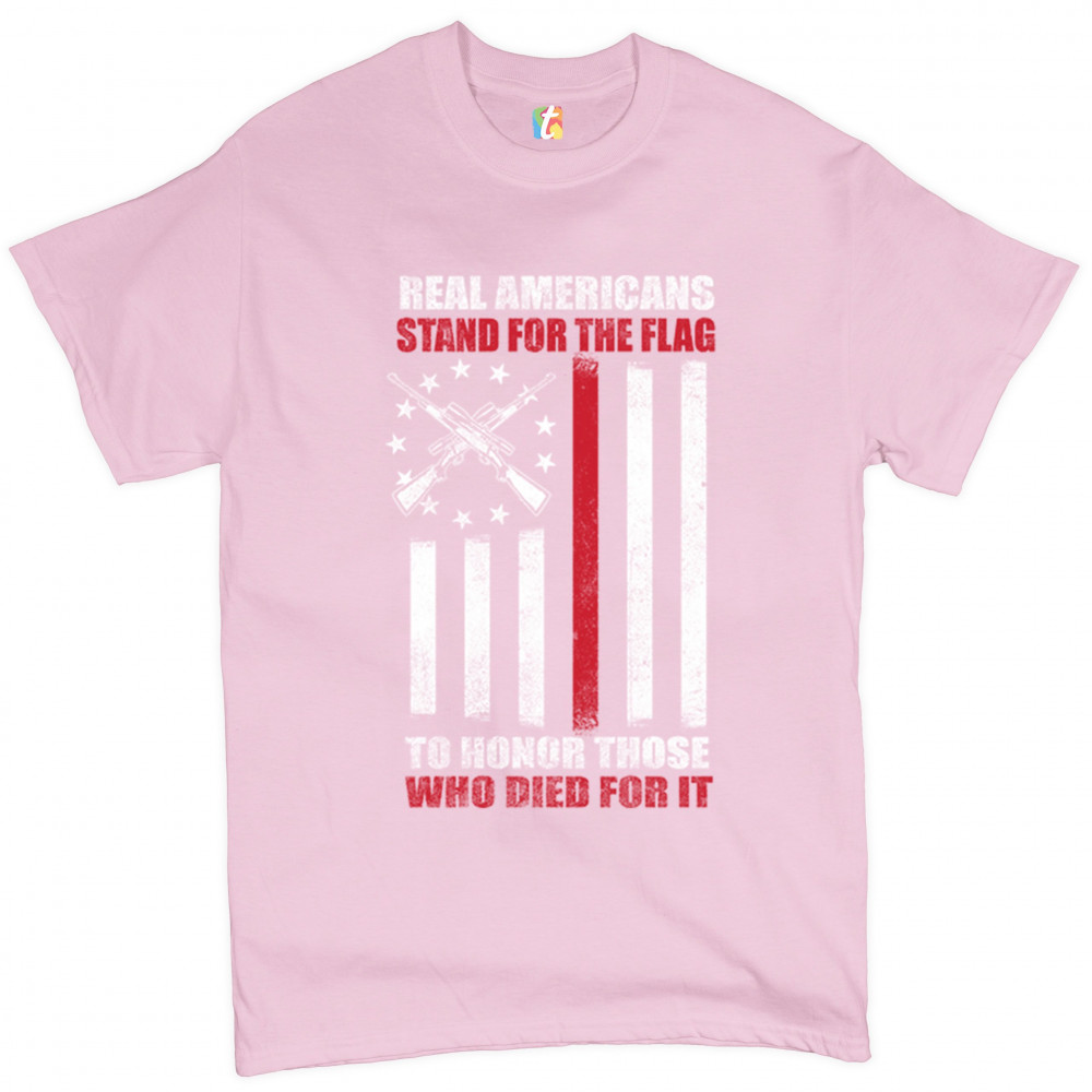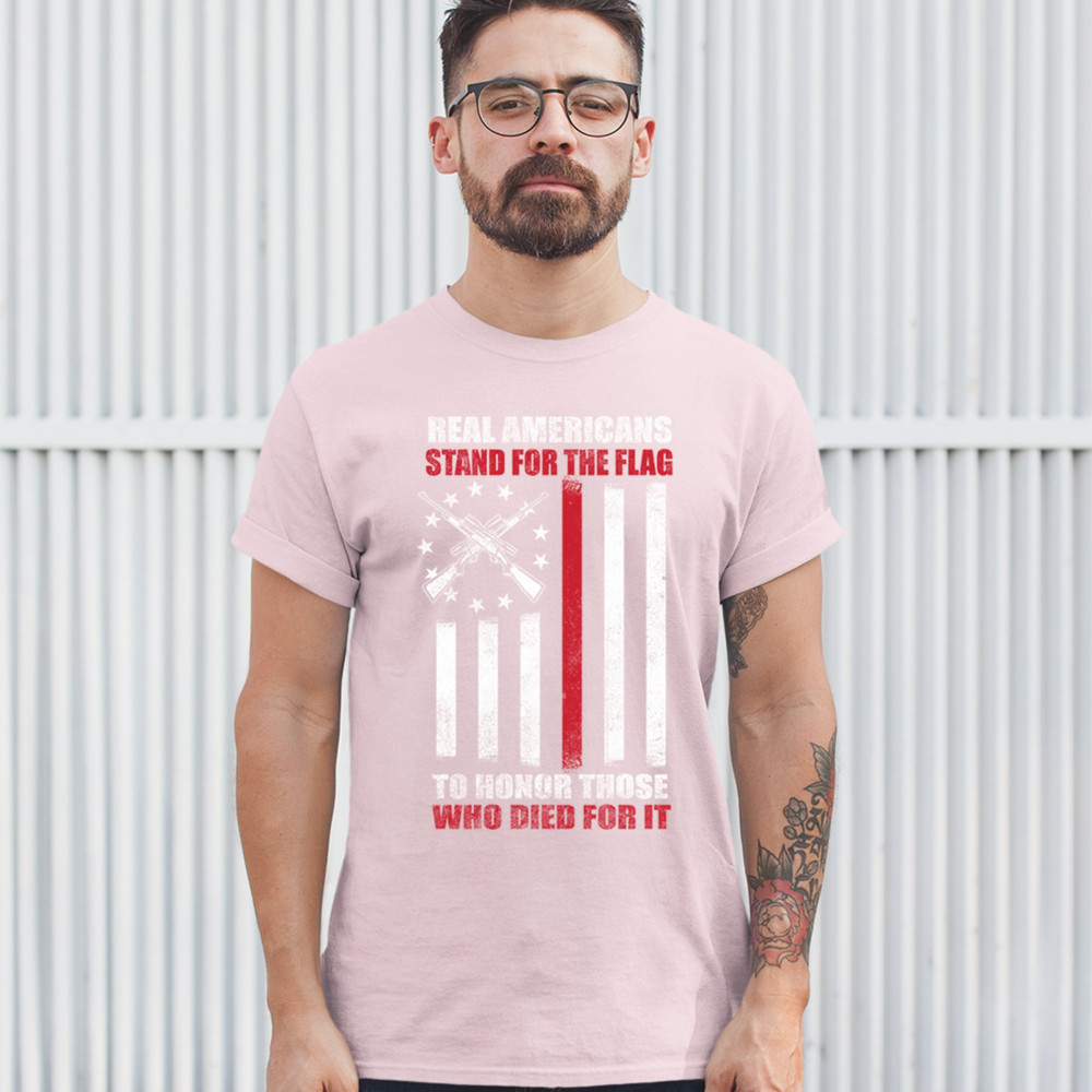 REAL AMERICANS STAND FOR THE FLAG t-shirt patriotic veteran's day men's tee light pink