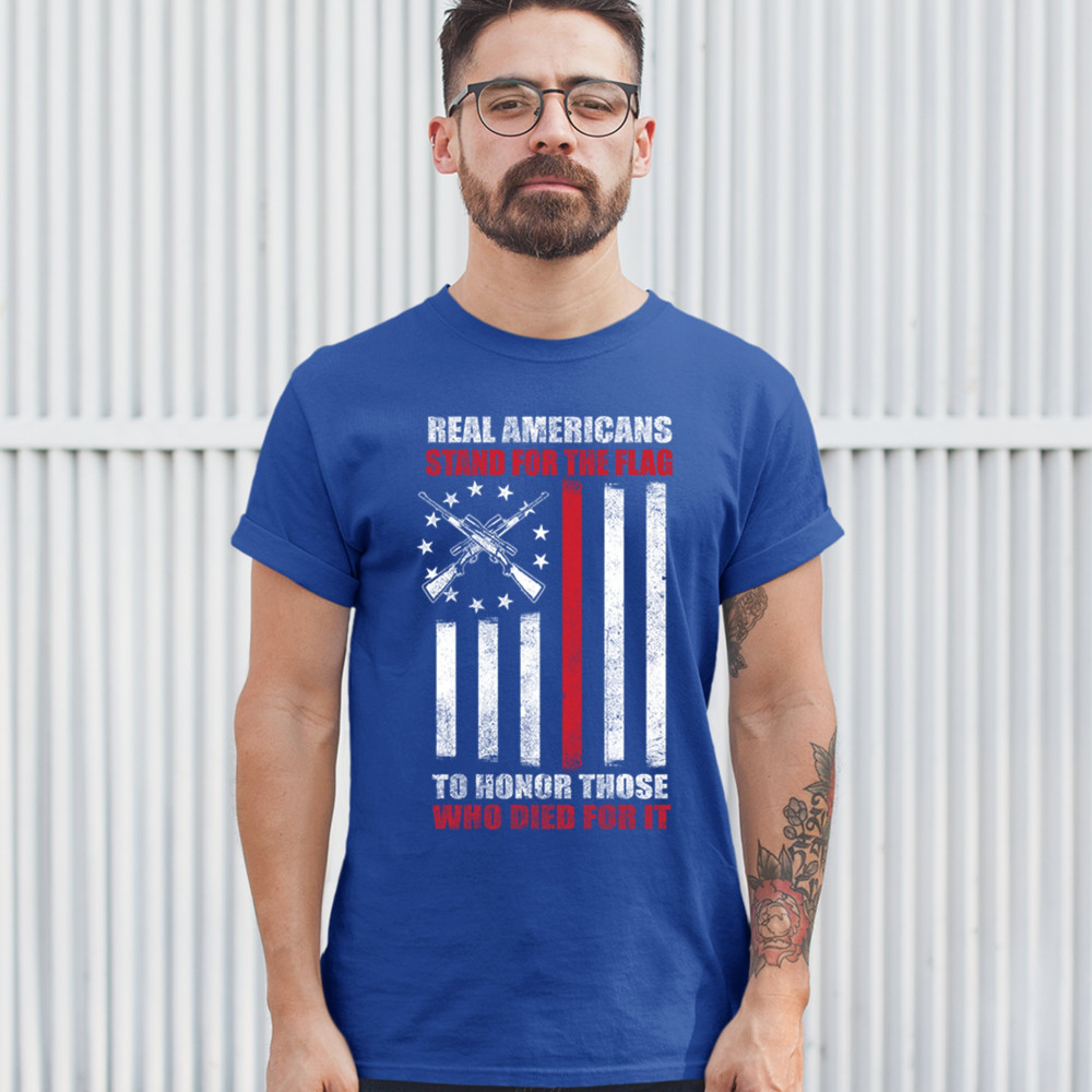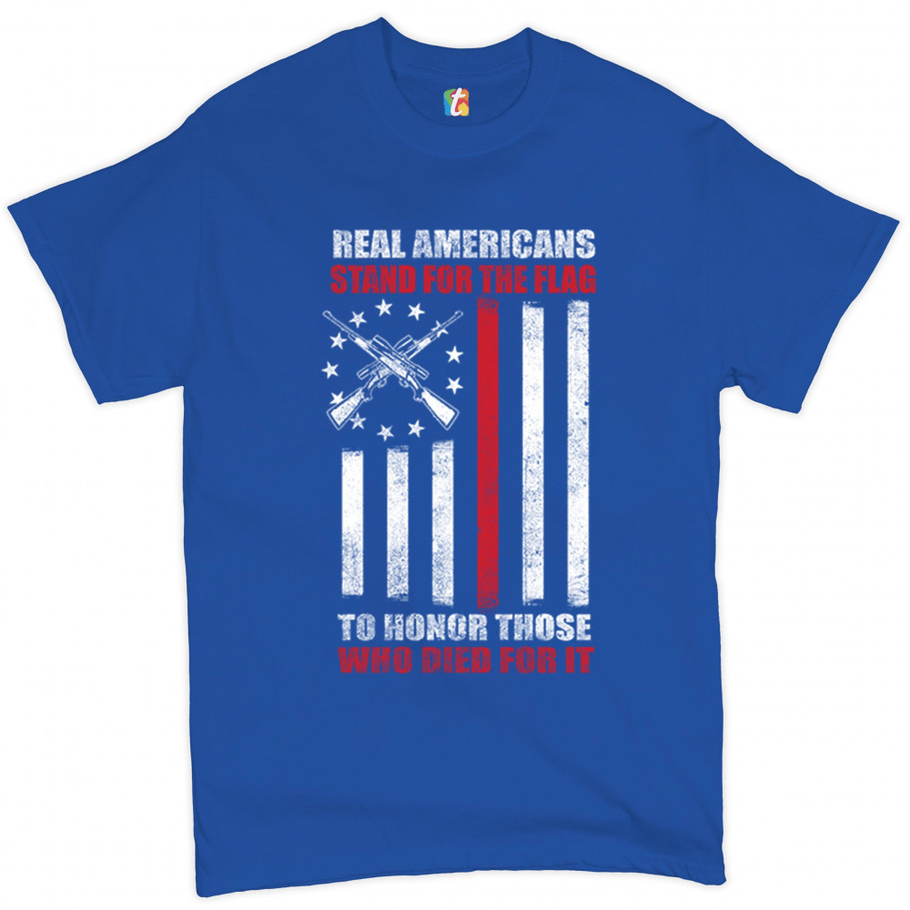 REAL AMERICANS STAND FOR THE FLAG t-shirt patriotic veteran's day men's tee royal blue