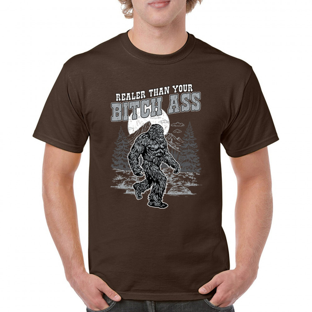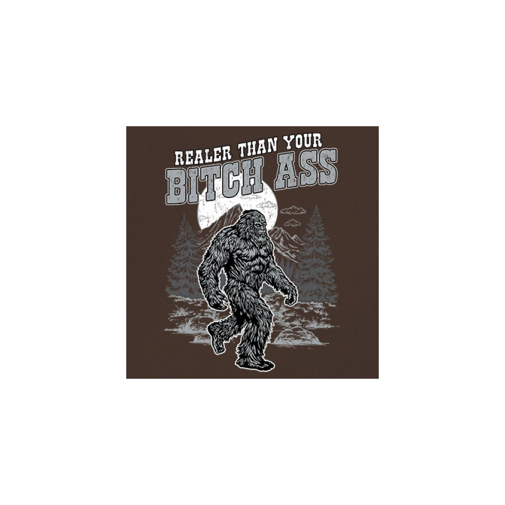 Edgy Bigfoot design with sarcastic cryptid humor and gritty wilderness style. Great for trolls, jokers, and rugged outdoors fans.