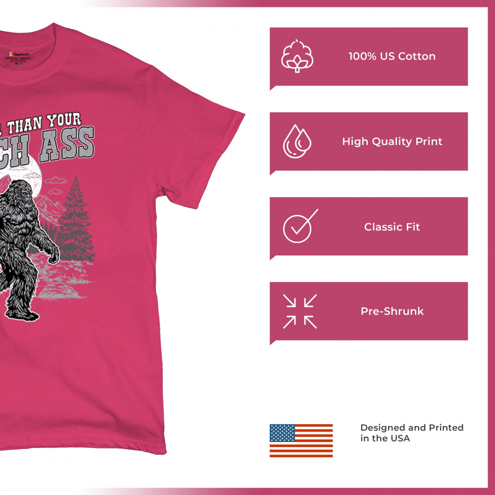 Edgy Bigfoot design with sarcastic cryptid humor and gritty wilderness style. Great for trolls, jokers, and rugged outdoors fans.