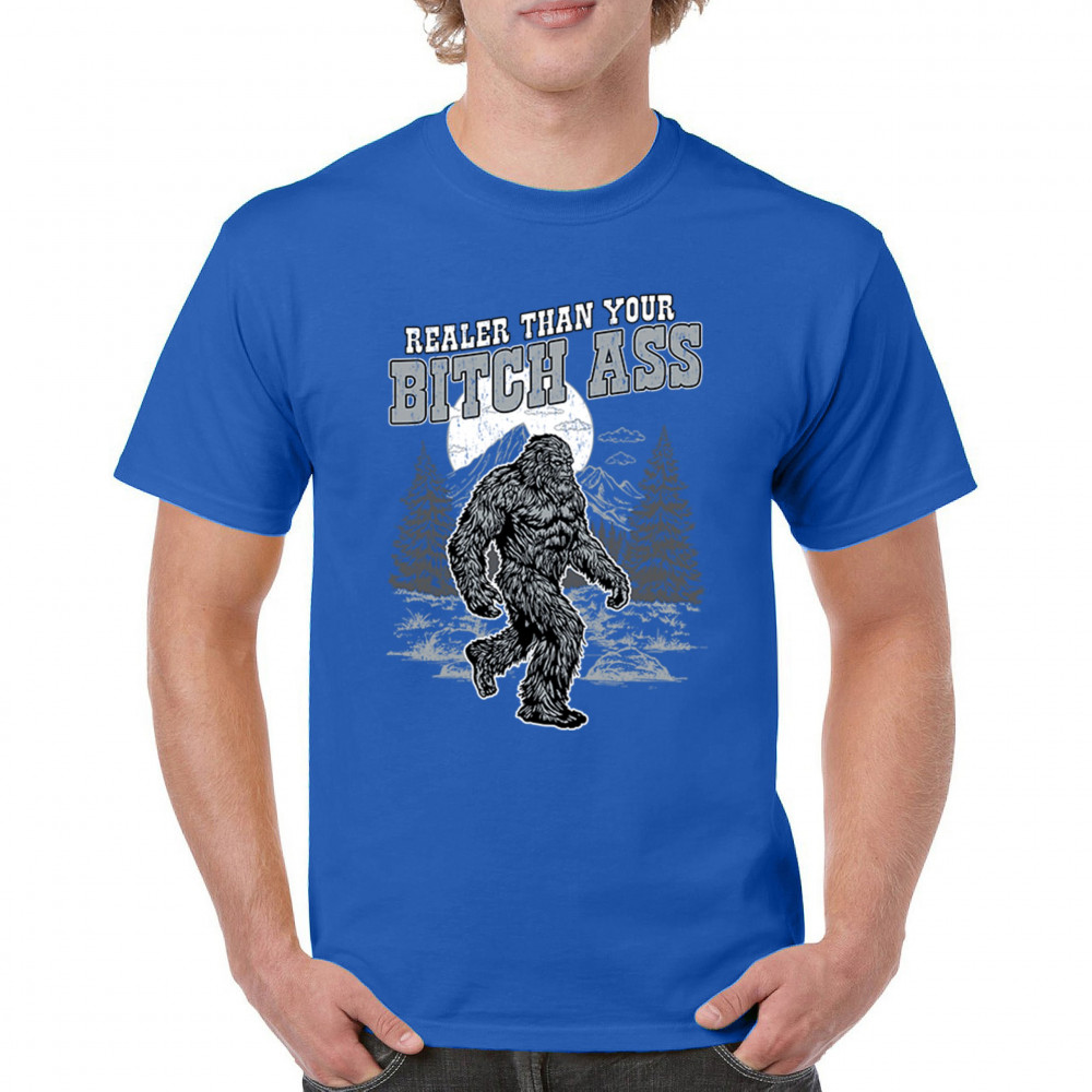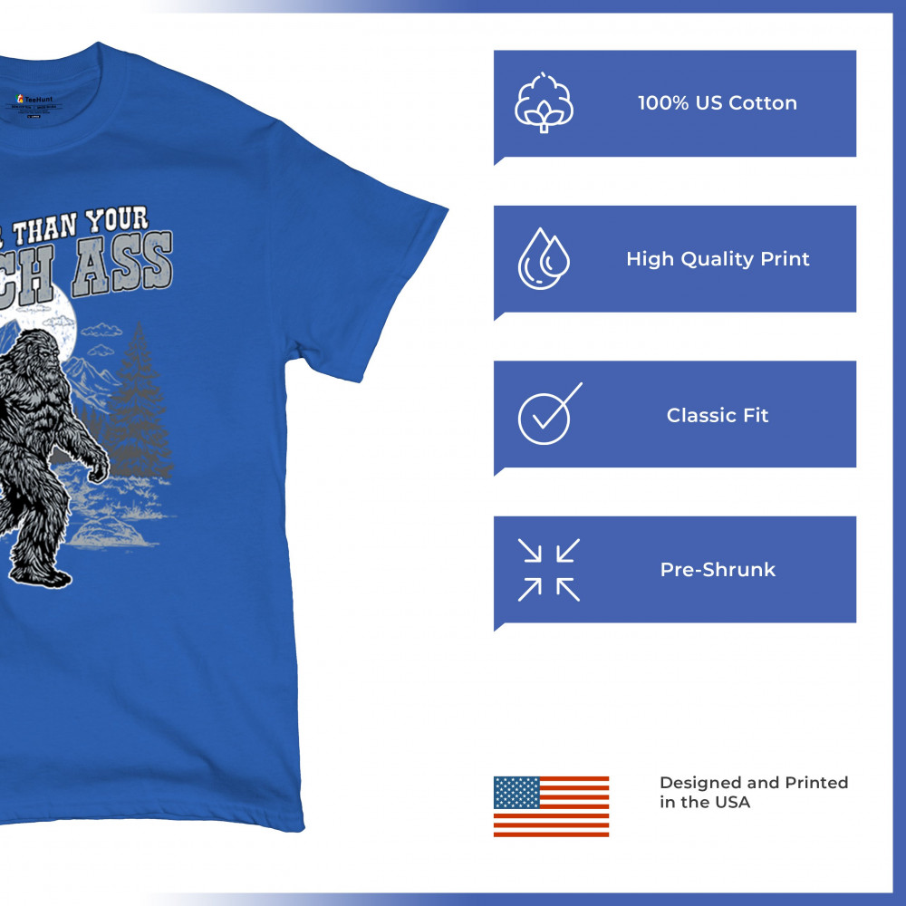 Edgy Bigfoot design with sarcastic cryptid humor and gritty wilderness style. Great for trolls, jokers, and rugged outdoors fans.