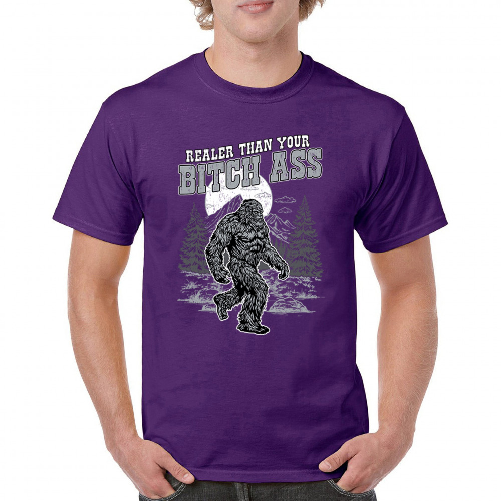 Edgy Bigfoot design with sarcastic cryptid humor and gritty wilderness style. Great for trolls, jokers, and rugged outdoors fans.