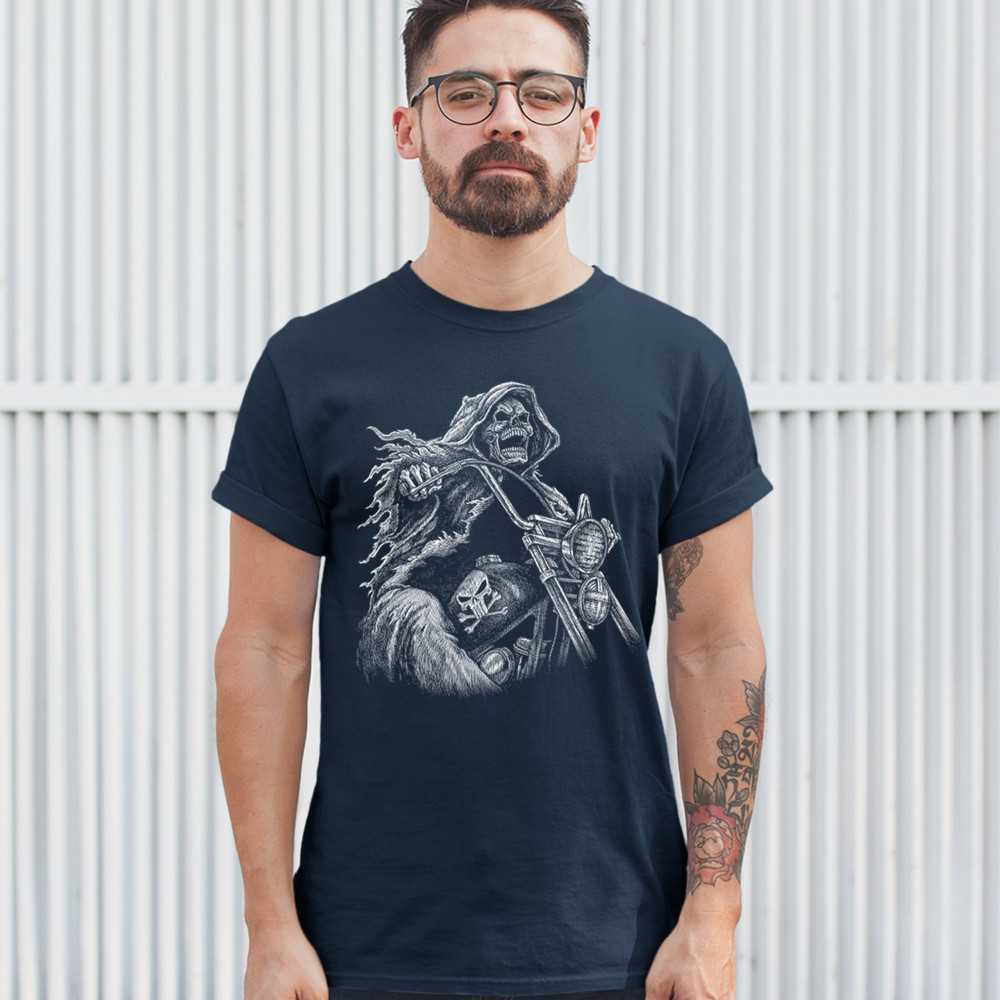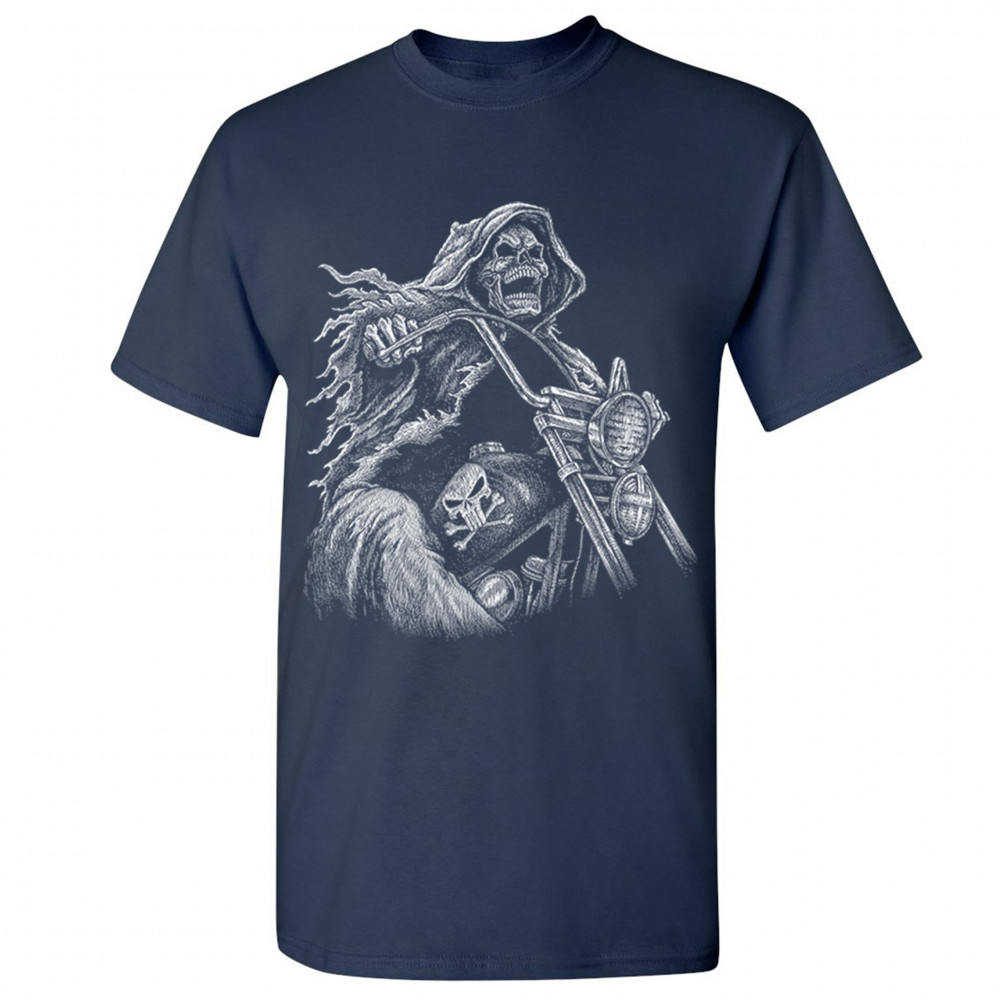 REAPER BIKER t-shirt ride or die skeleton biker forever motorcycle men's tee navy blue