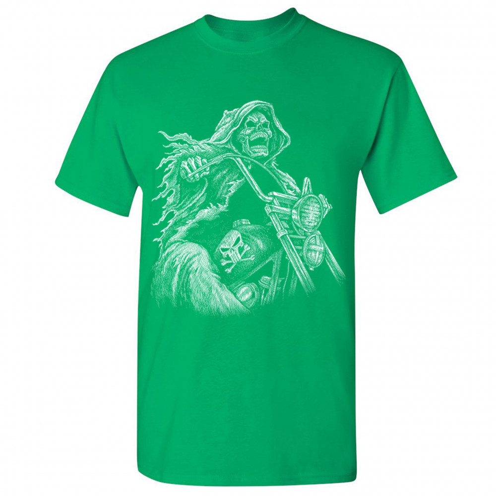 REAPER BIKER t-shirt ride or die skeleton biker forever motorcycle men's tee green