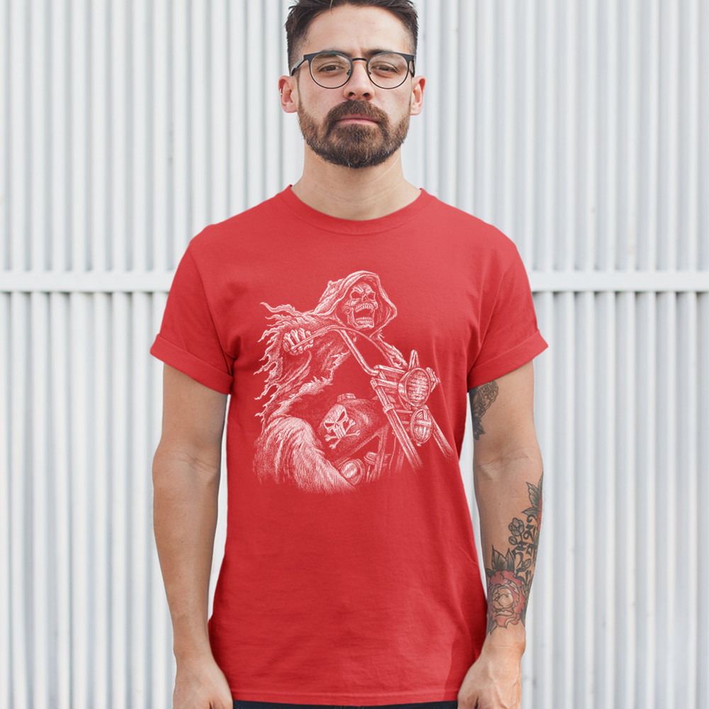 REAPER BIKER t-shirt ride or die skeleton biker forever motorcycle men's tee red