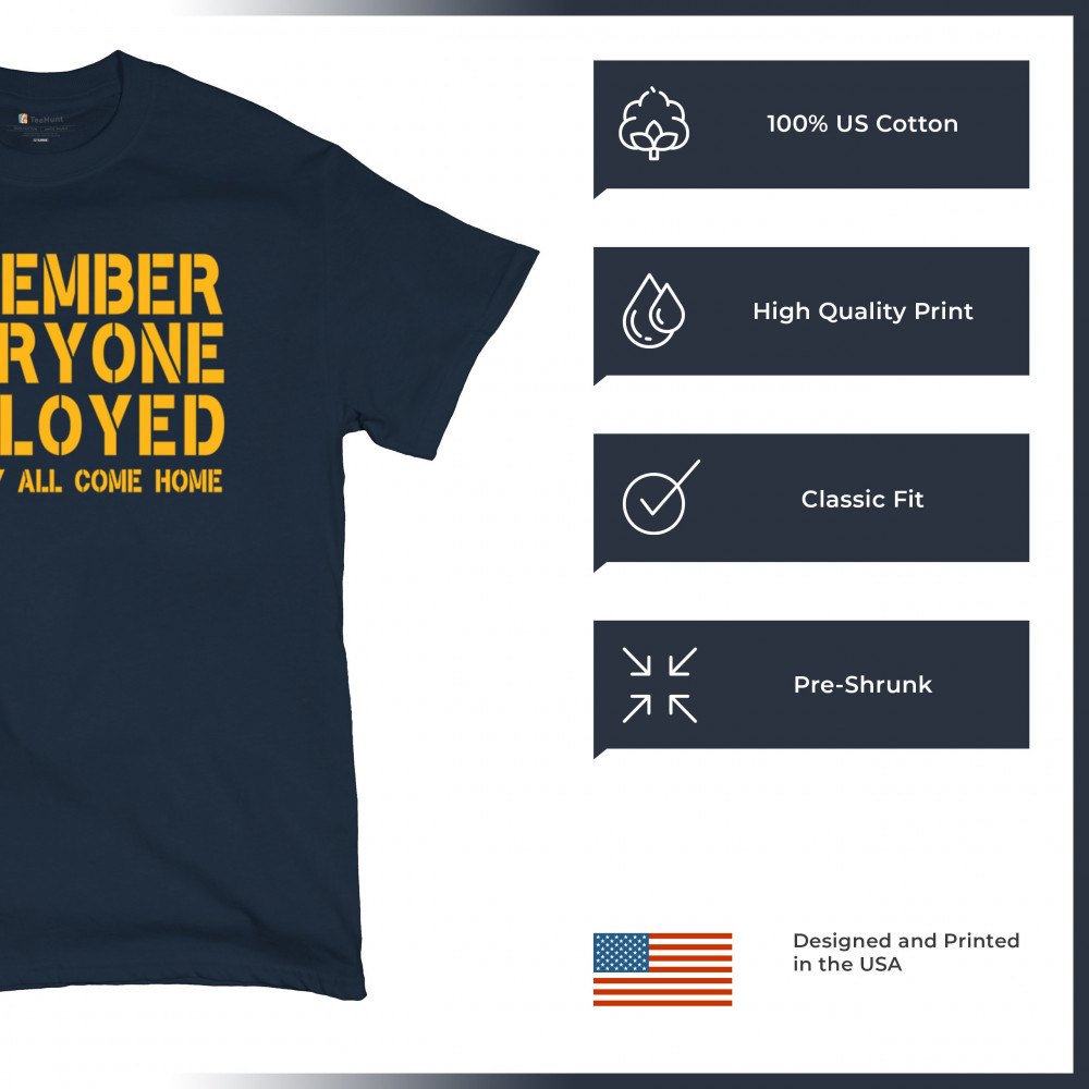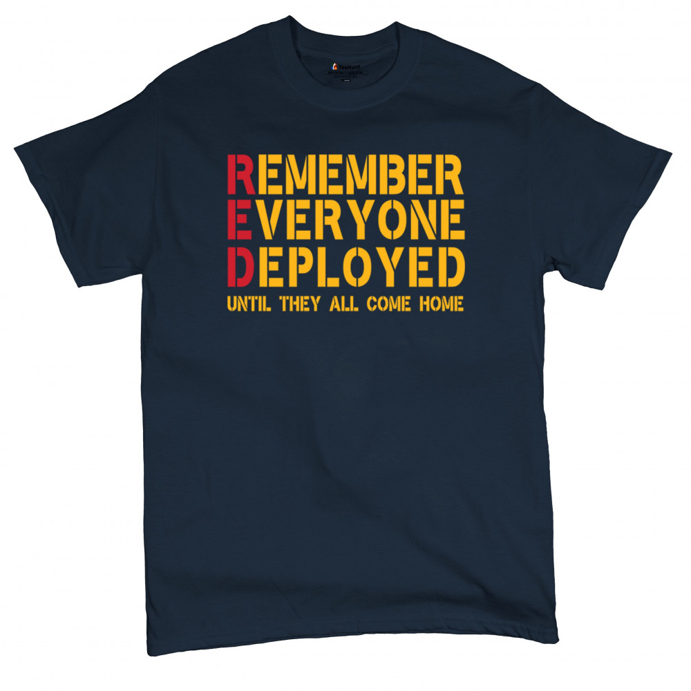 Show your support for deployed troops with our "Remember Everyone Deployed" shirt. Perfect for patriotic events like Veterans Day and Memorial Day.
