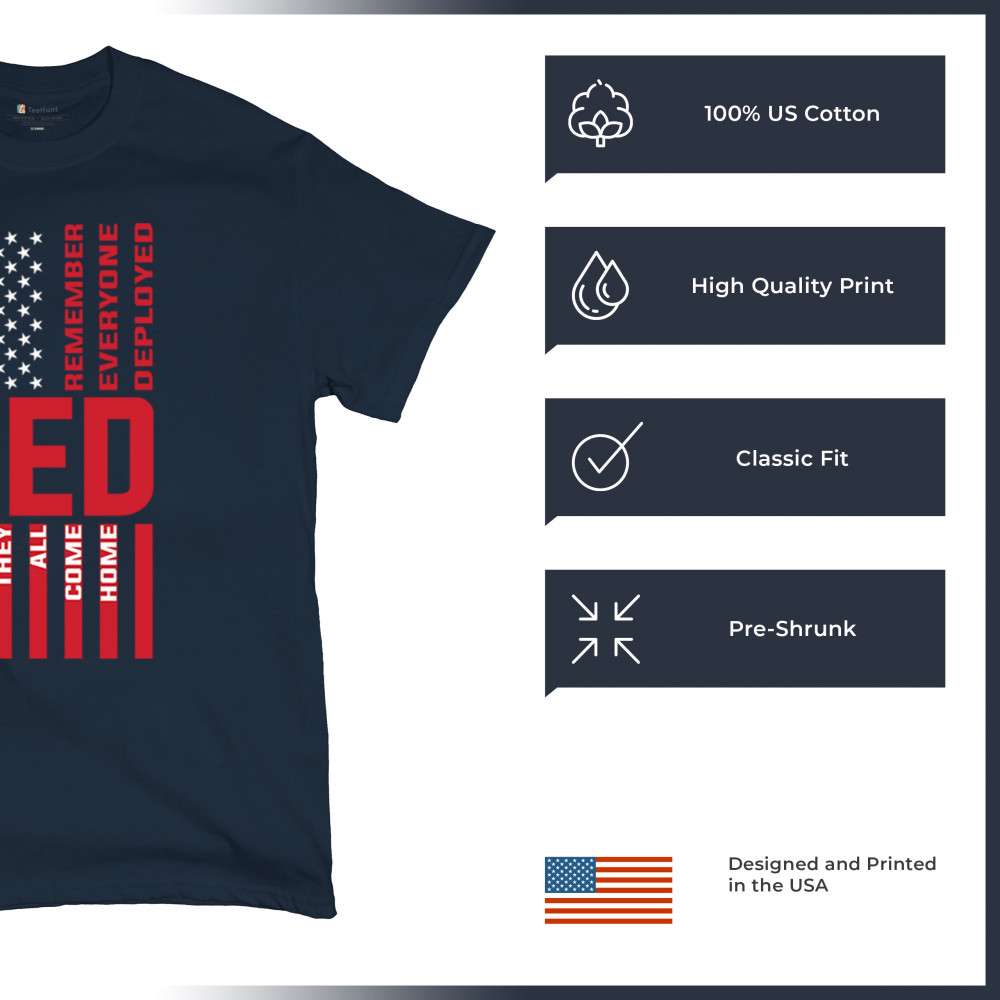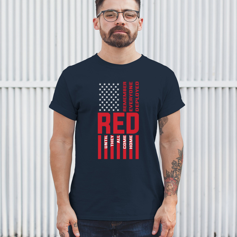 Support our troops with the "RED - Remember Everyone Deployed" design. A powerful reminder to honor our soldiers until they all come home. Ideal for patriotic events and daily wear.