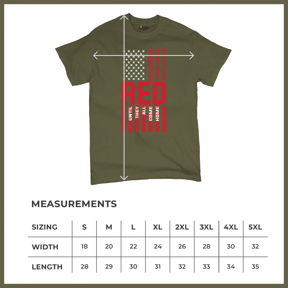 Express your support for our brave soldiers with the "RED - Remember Everyone Deployed" design. This patriotic and impactful design serves as a powerful reminder to keep our troops in our thoughts until they safely return home. Ideal for patriotic events, military gatherings, and daily wear, this design allows you to visibly show your gratitude and support for those who serve. Add this meaningful design to your collection and stand in solidarity with our troops.