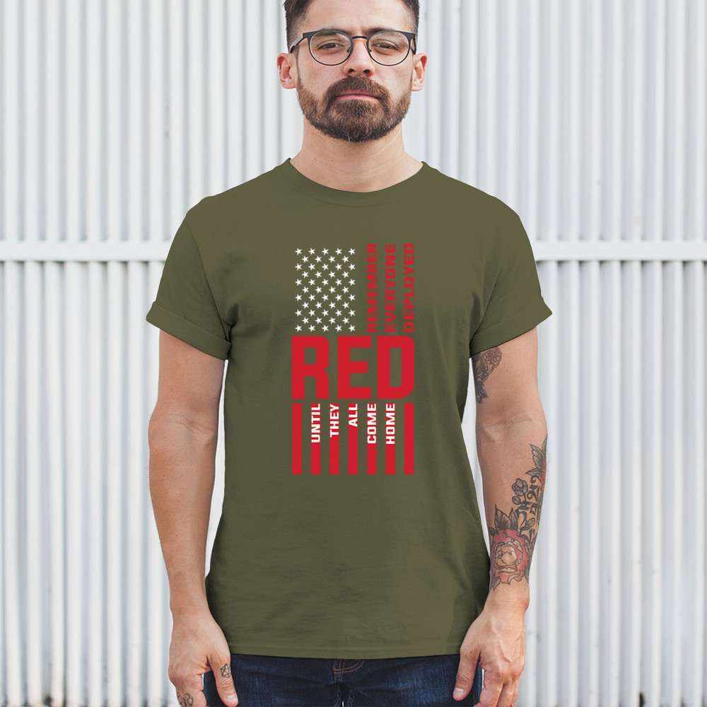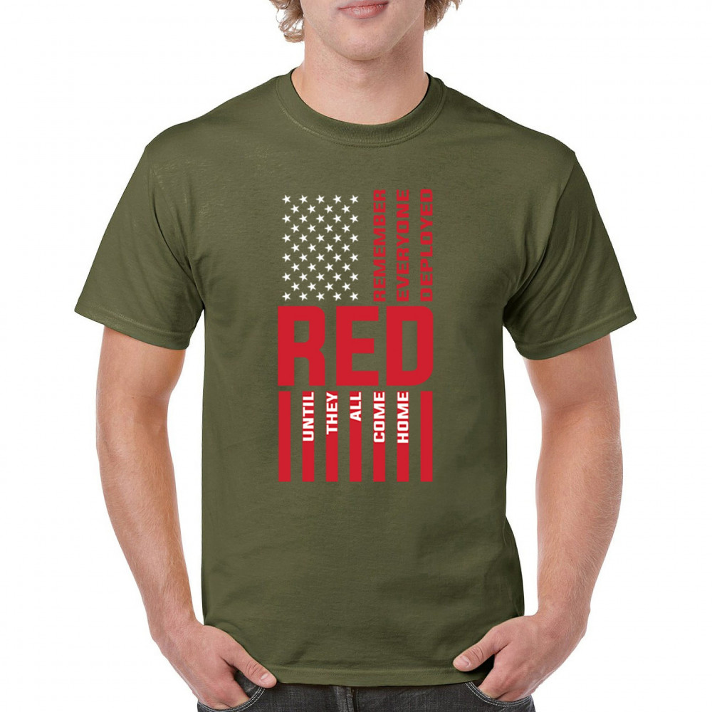 Support our troops with the "RED - Remember Everyone Deployed" design. A powerful reminder to honor our soldiers until they all come home. Ideal for patriotic events and daily wear.