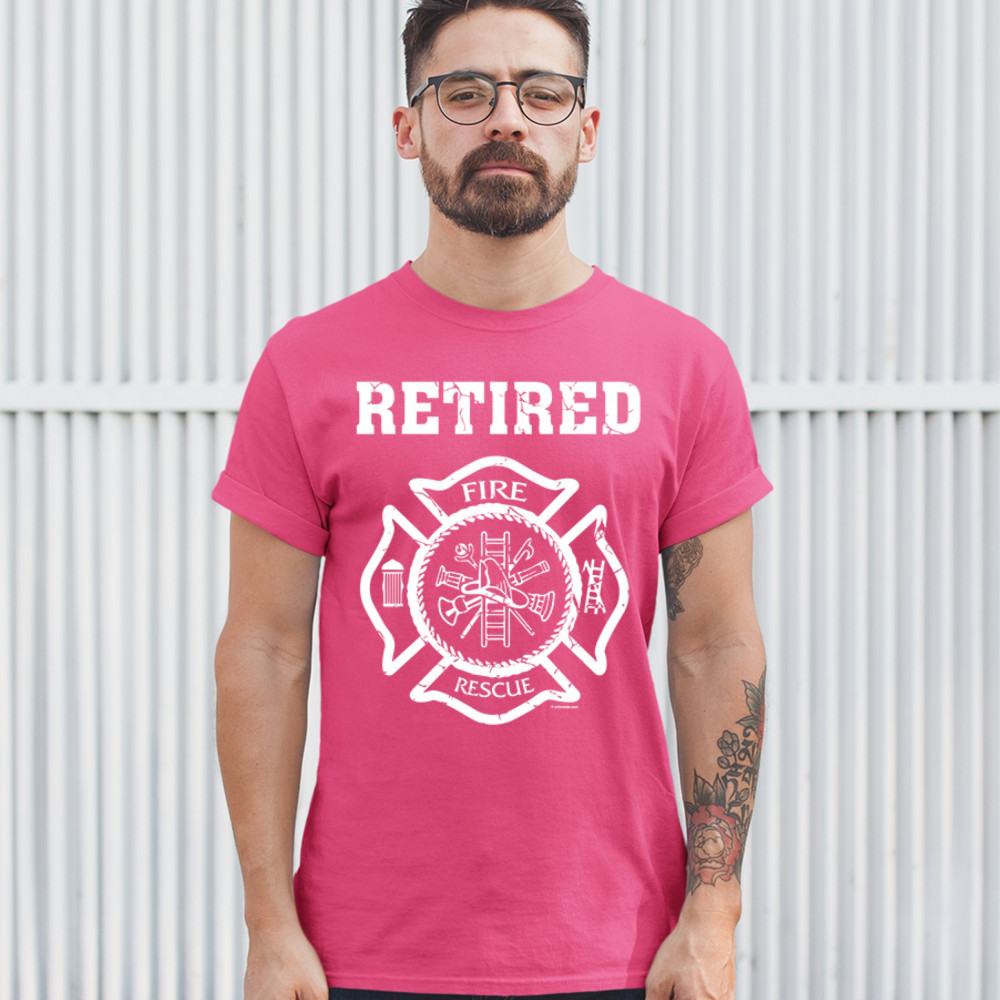 RETIRED FIREFIGHTER BADGE t-shirt fire and rescue fire department men's tee hot pink