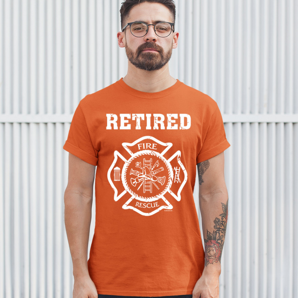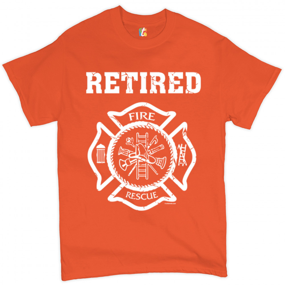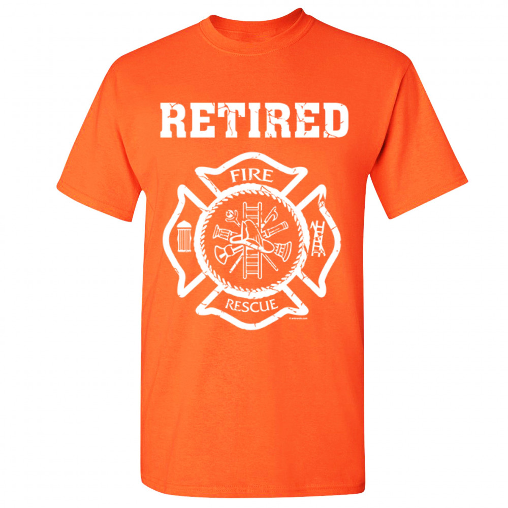 RETIRED FIREFIGHTER BADGE t-shirt fire and rescue fire department men's tee orange