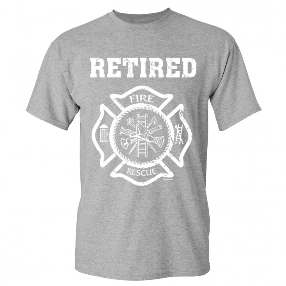 RETIRED FIREFIGHTER BADGE t-shirt fire and rescue fire department men's tee gray