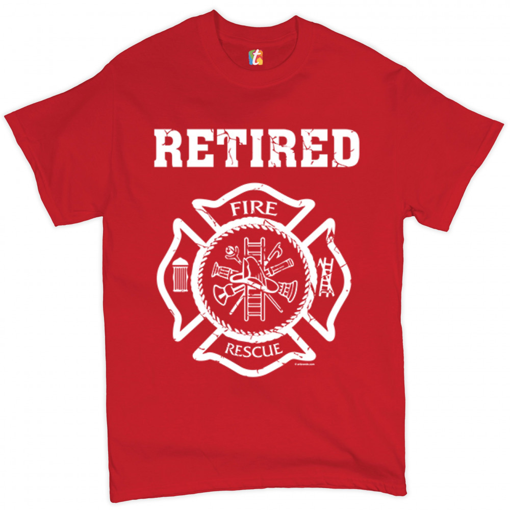 RETIRED FIREFIGHTER BADGE t-shirt fire and rescue fire department men's tee red