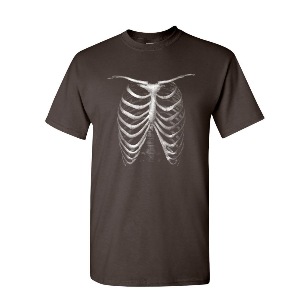 RIB CAGE GLOW IN THE DARK t-shirt skeleton halloween bones xray mens tee shirt brown