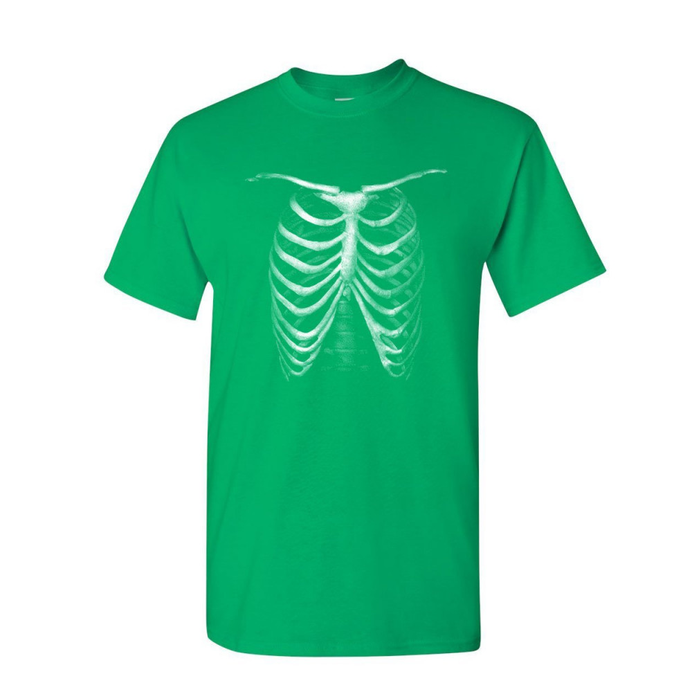 RIB CAGE GLOW IN THE DARK t-shirt skeleton halloween bones xray mens tee shirt green