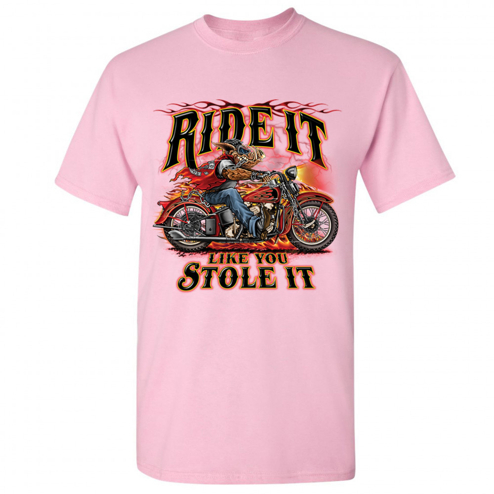 RIDE IT LIKE YOU STOLE IT t-shirt biker born to be wild motorcycle men's tee light pink