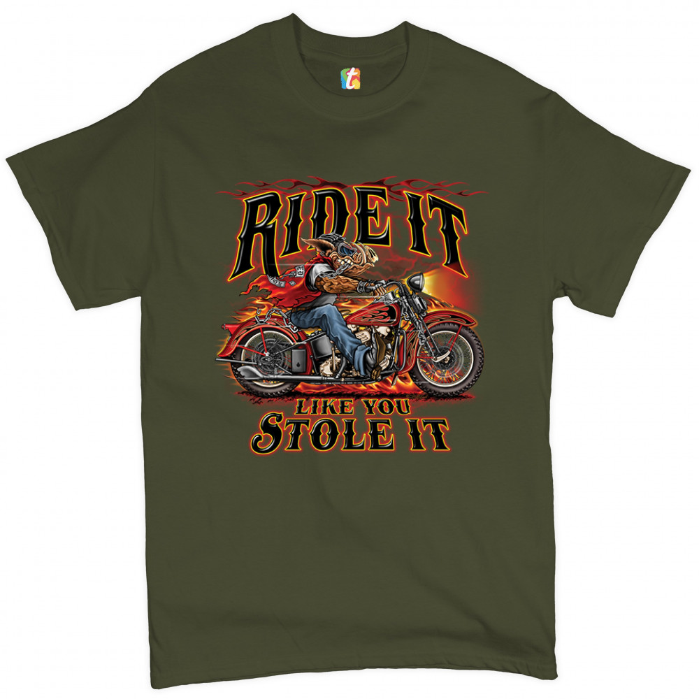 RIDE IT LIKE YOU STOLE IT t-shirt biker born to be wild motorcycle men's tee military green
