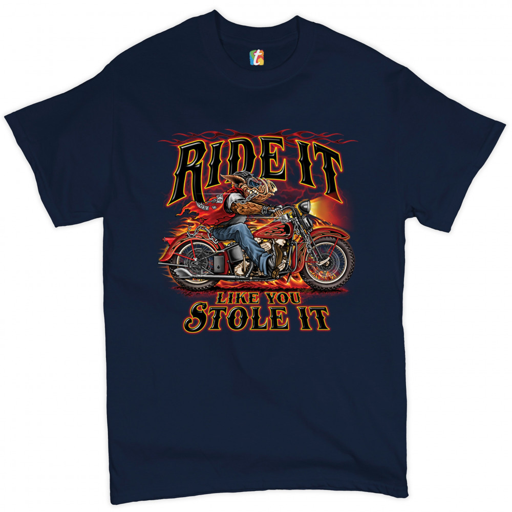 RIDE IT LIKE YOU STOLE IT t-shirt biker born to be wild motorcycle men's tee navy blue