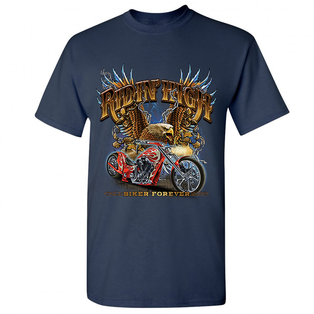RIDIN' HIGH t-shirt biker forever chopper rider american eagle men's tee navy blue
