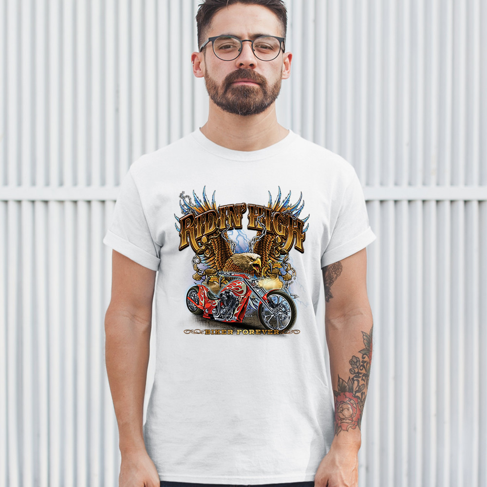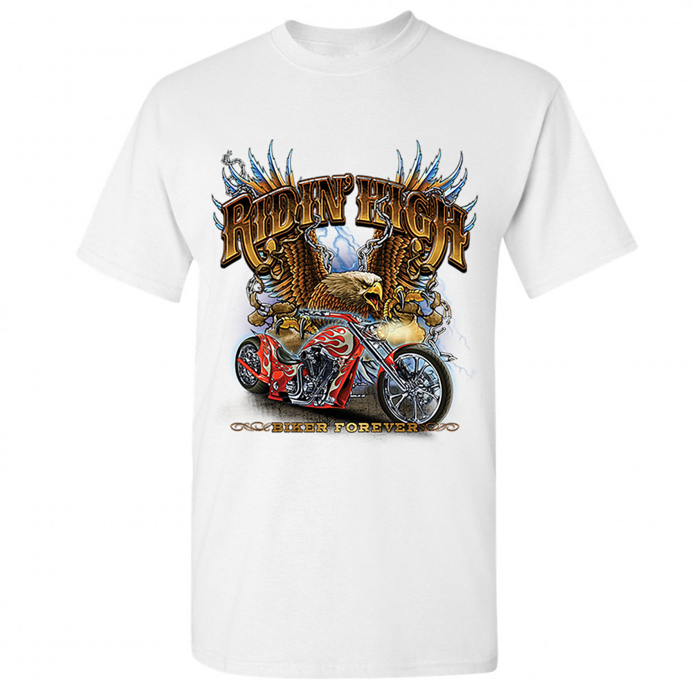 RIDIN' HIGH t-shirt biker forever chopper rider american eagle men's tee white