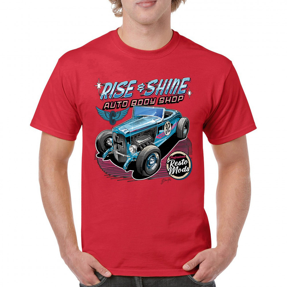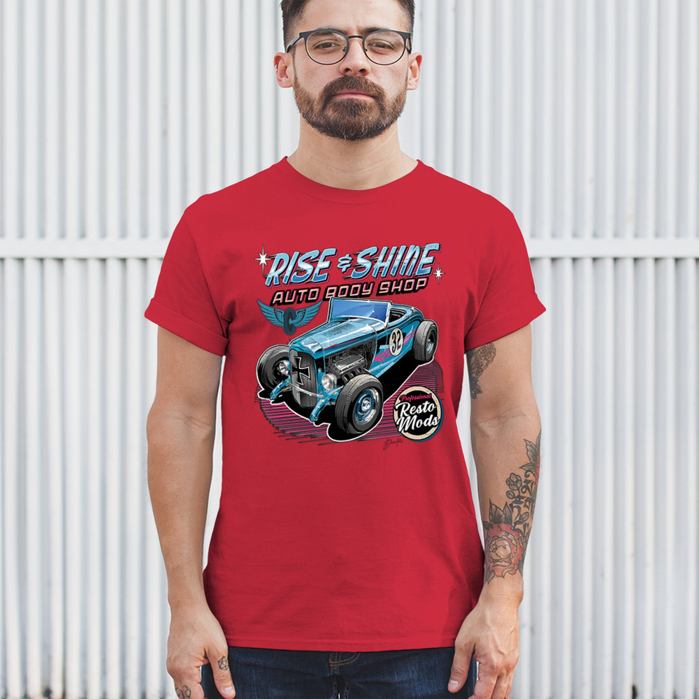 Our "Rise & Shine Auto Body Shop" design is a tribute to classic car culture and professional resto mods. This striking graphic showcases a vintage hot rod, perfect for car enthusiasts and auto restoration fans. Whether you're hitting the car show circuit or working in your garage, this design adds a touch of retro charm to your look. Crafted from premium materials, it offers both comfort and durability, ensuring it stands up to your active lifestyle. Celebrate the art of automotive restoration with this standout design.