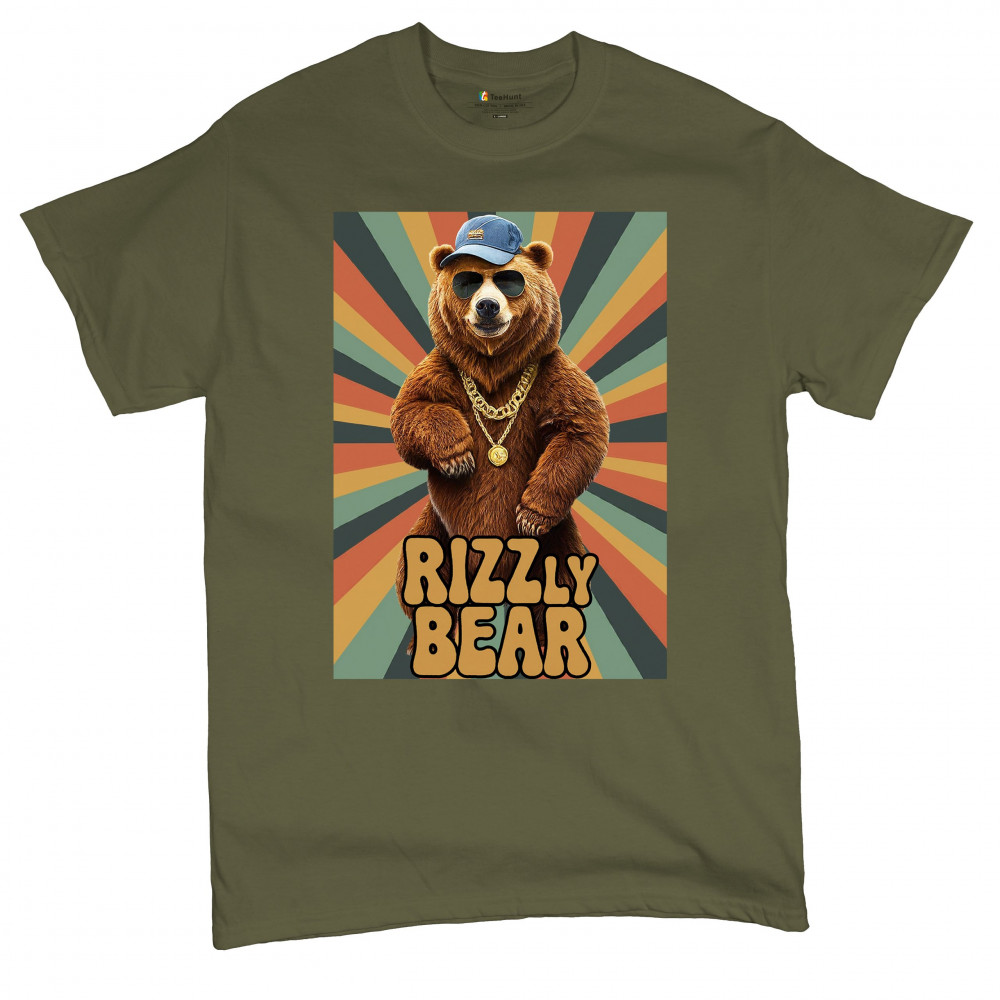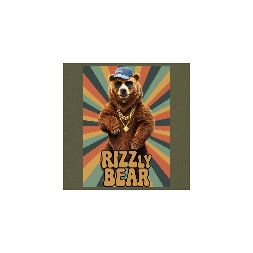 What happens when a bear strolls through the city and grabs a cap and some gold? You get the Rizzly Bear. It's fun, fearless, and a bit funky – a true original in the world of graphic design, just like you.
