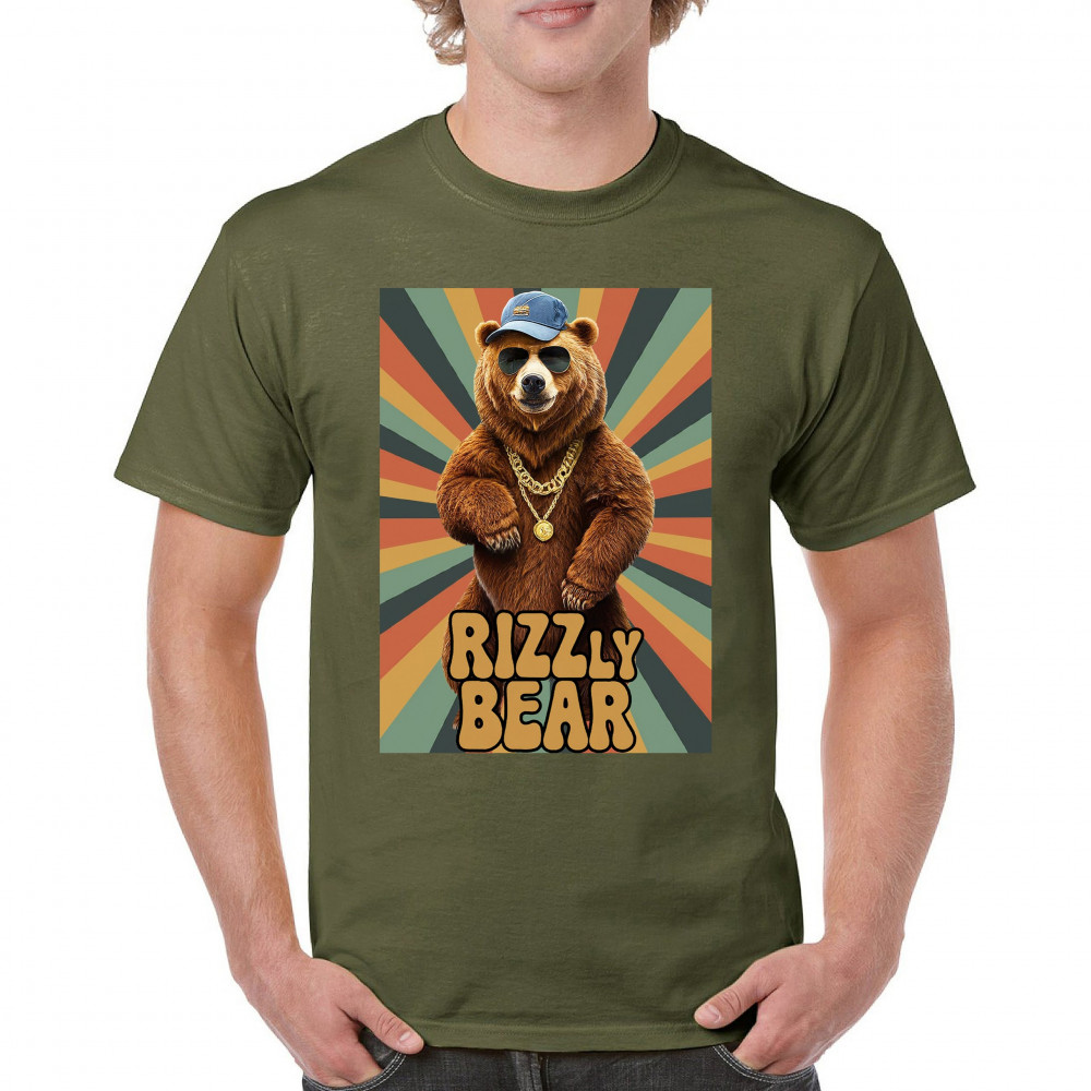 Here's to the bear that got the 'rizz.' With shades on and bling out, this bear is not just part of the scene; it is the scene. This design says 'I'm here to party', and the party doesn't start till the Rizzly Bear walks in.
