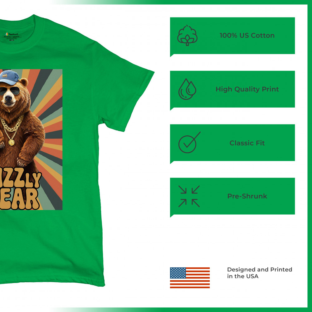 Here's to the bear that got the 'rizz.' With shades on and bling out, this bear is not just part of the scene; it is the scene. This design says 'I'm here to party', and the party doesn't start till the Rizzly Bear walks in.