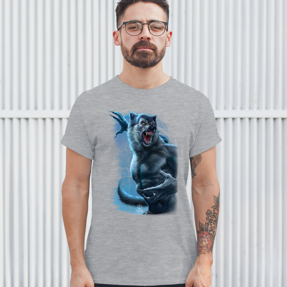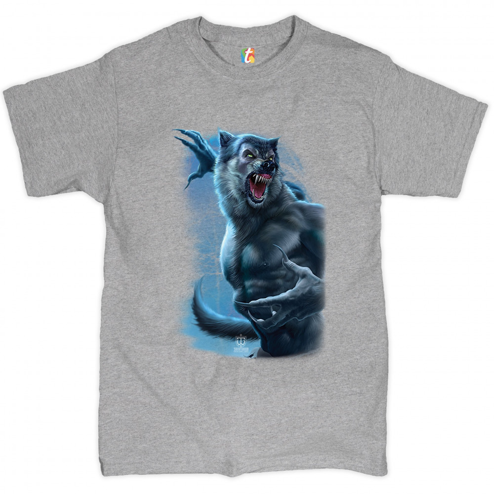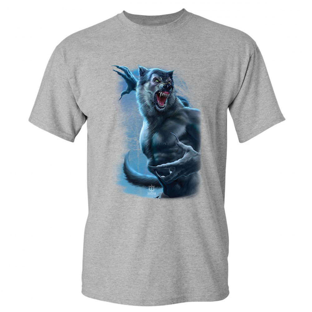 ROARING WEREWOLF t-shirt halloween horror scary gothic monster men's tee gray