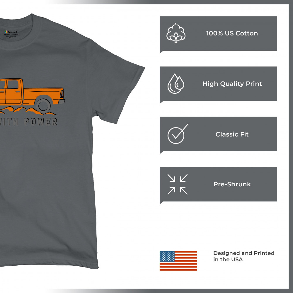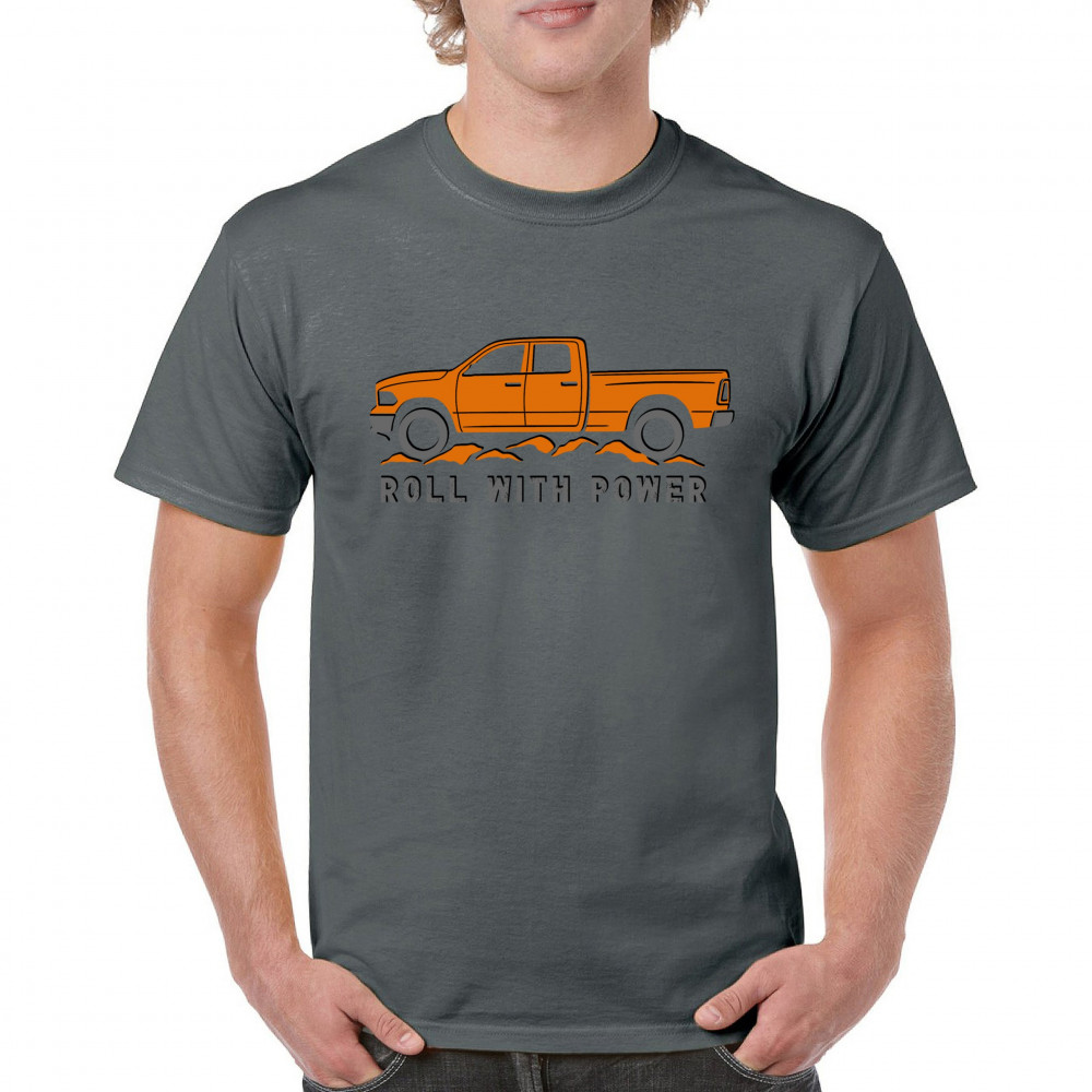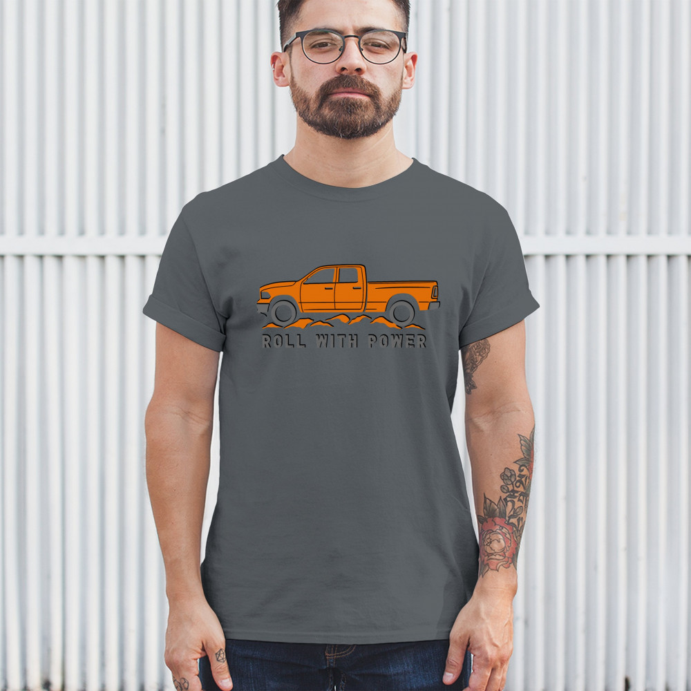 Pickup truck design for off-road fans and truck lovers. Show your road power and style with this bold “Roll With Power†truck graphic.