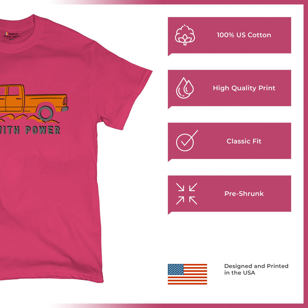 Pickup truck design for off-road fans and truck lovers. Show your road power and style with this bold “Roll With Power†truck graphic.