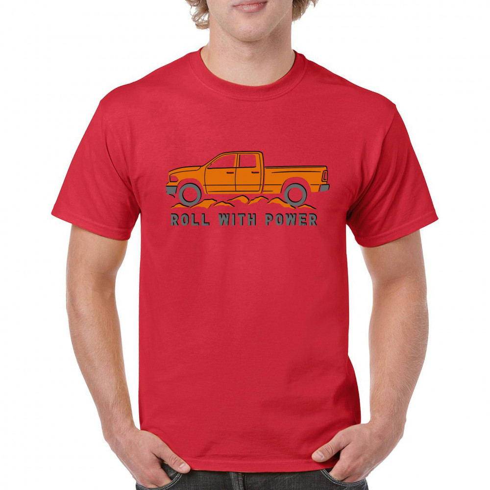 Pickup truck design for off-road fans and truck lovers. Show your road power and style with this bold “Roll With Power†truck graphic.