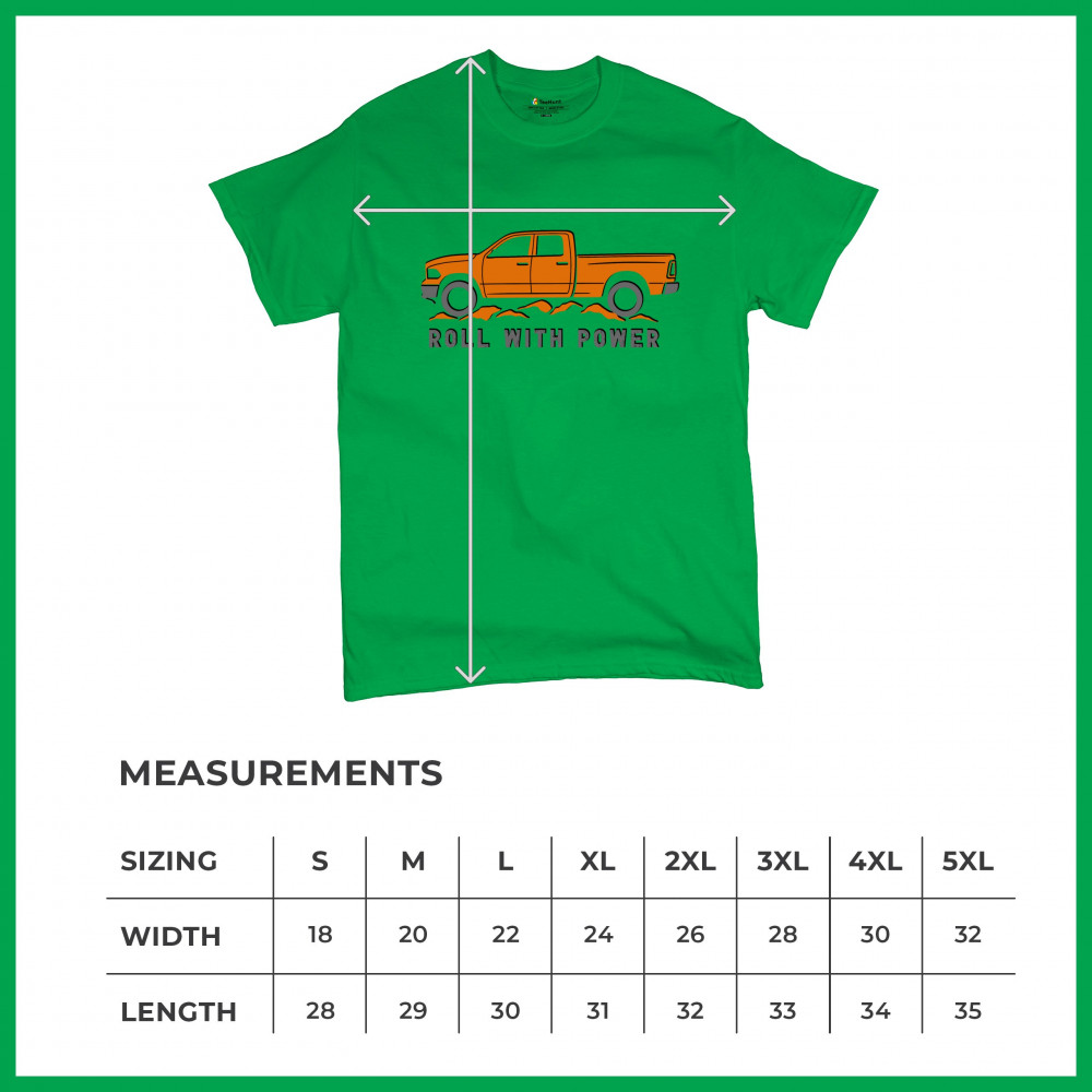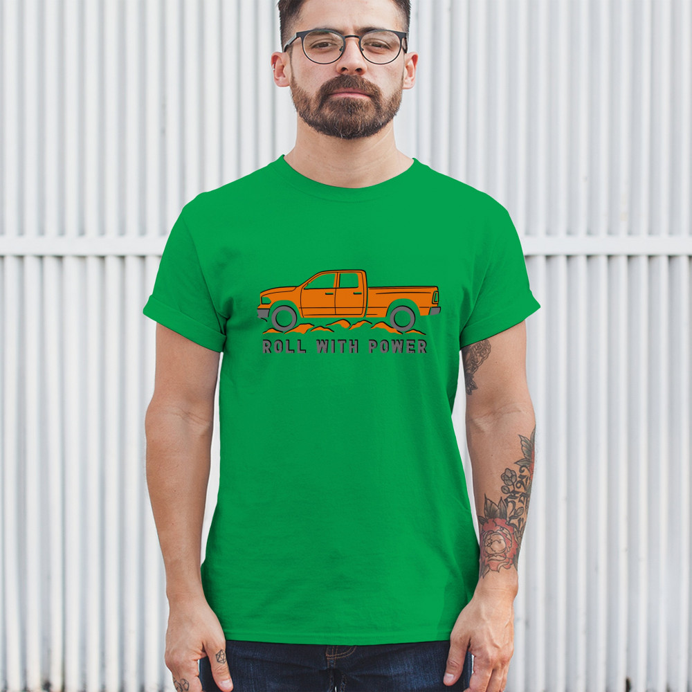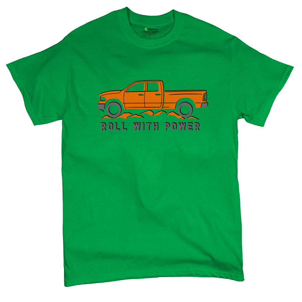 Pickup truck design for off-road fans and truck lovers. Show your road power and style with this bold “Roll With Power†truck graphic.