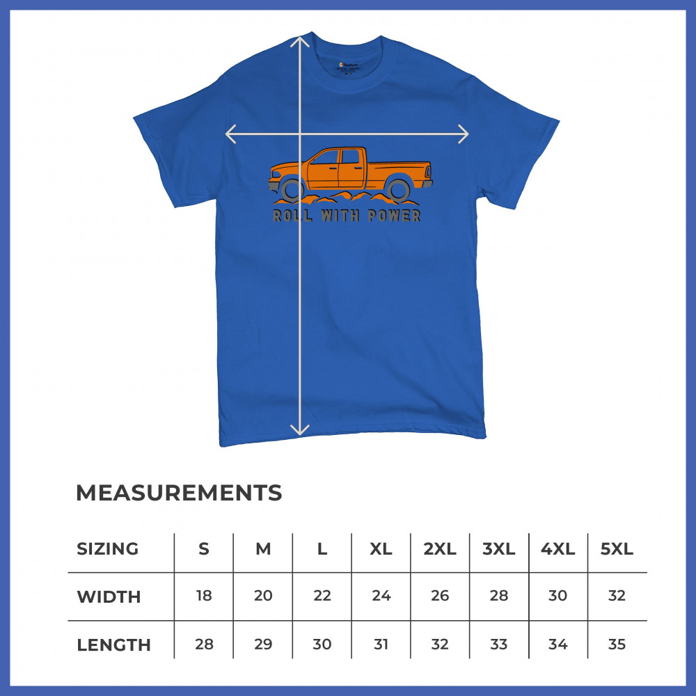 Pickup truck design for off-road fans and truck lovers. Show your road power and style with this bold “Roll With Power†truck graphic.