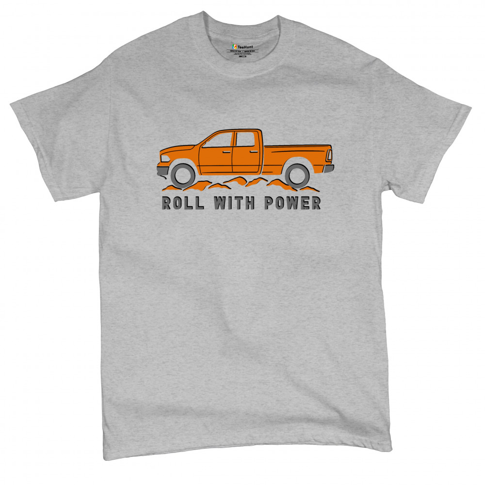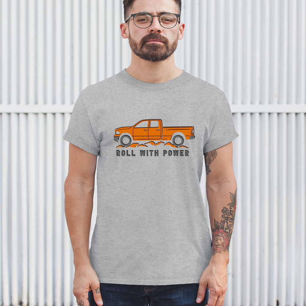 Pickup truck design for off-road fans and truck lovers. Show your road power and style with this bold “Roll With Power†truck graphic.